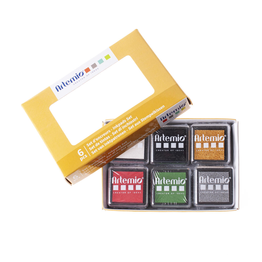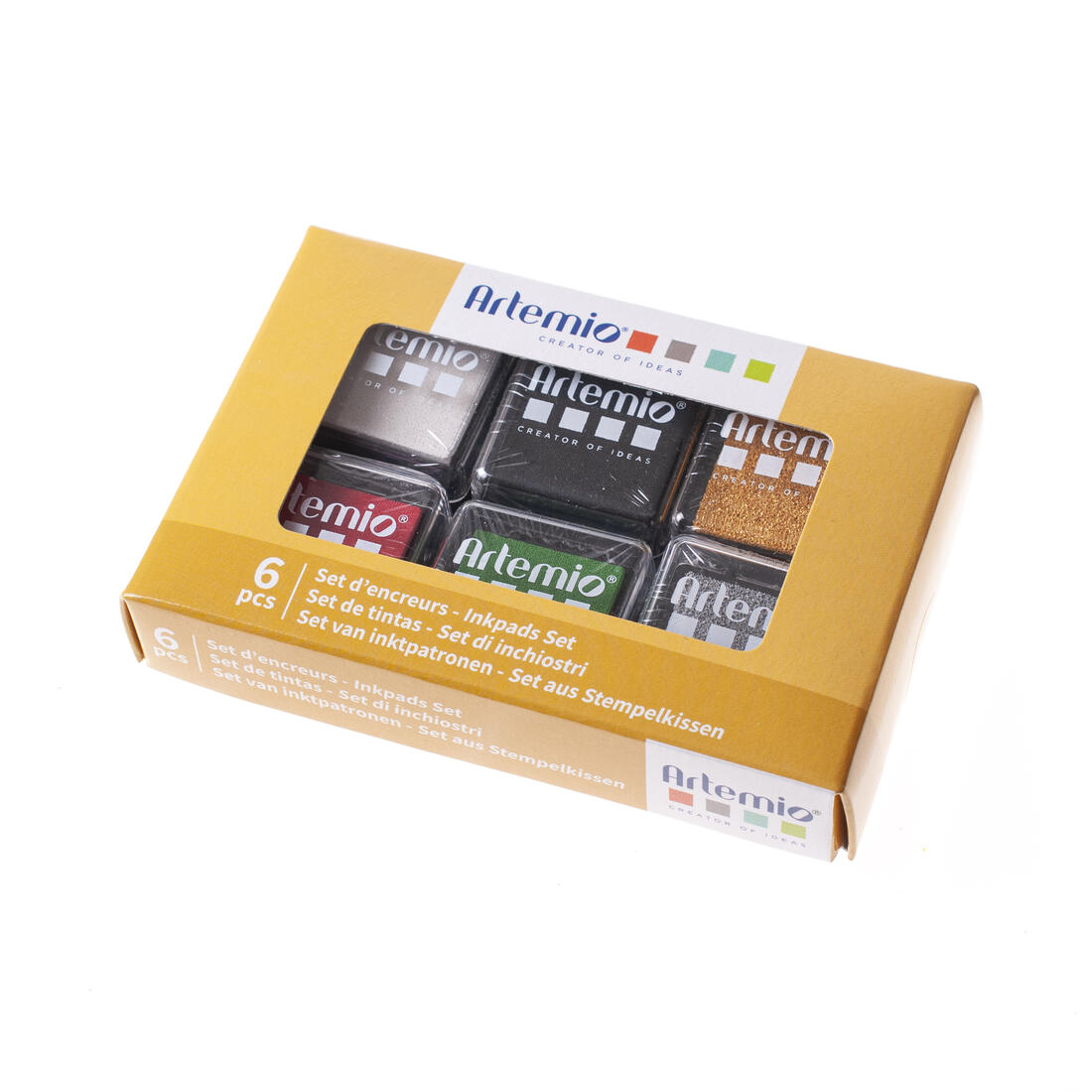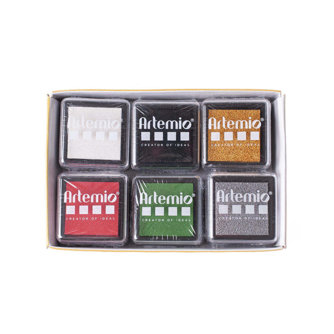 Stempelkussens in 6 kleuren: rood, groen, zwart, wit, goud en zilver.