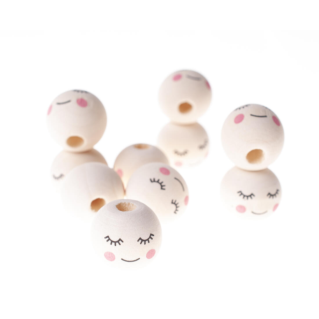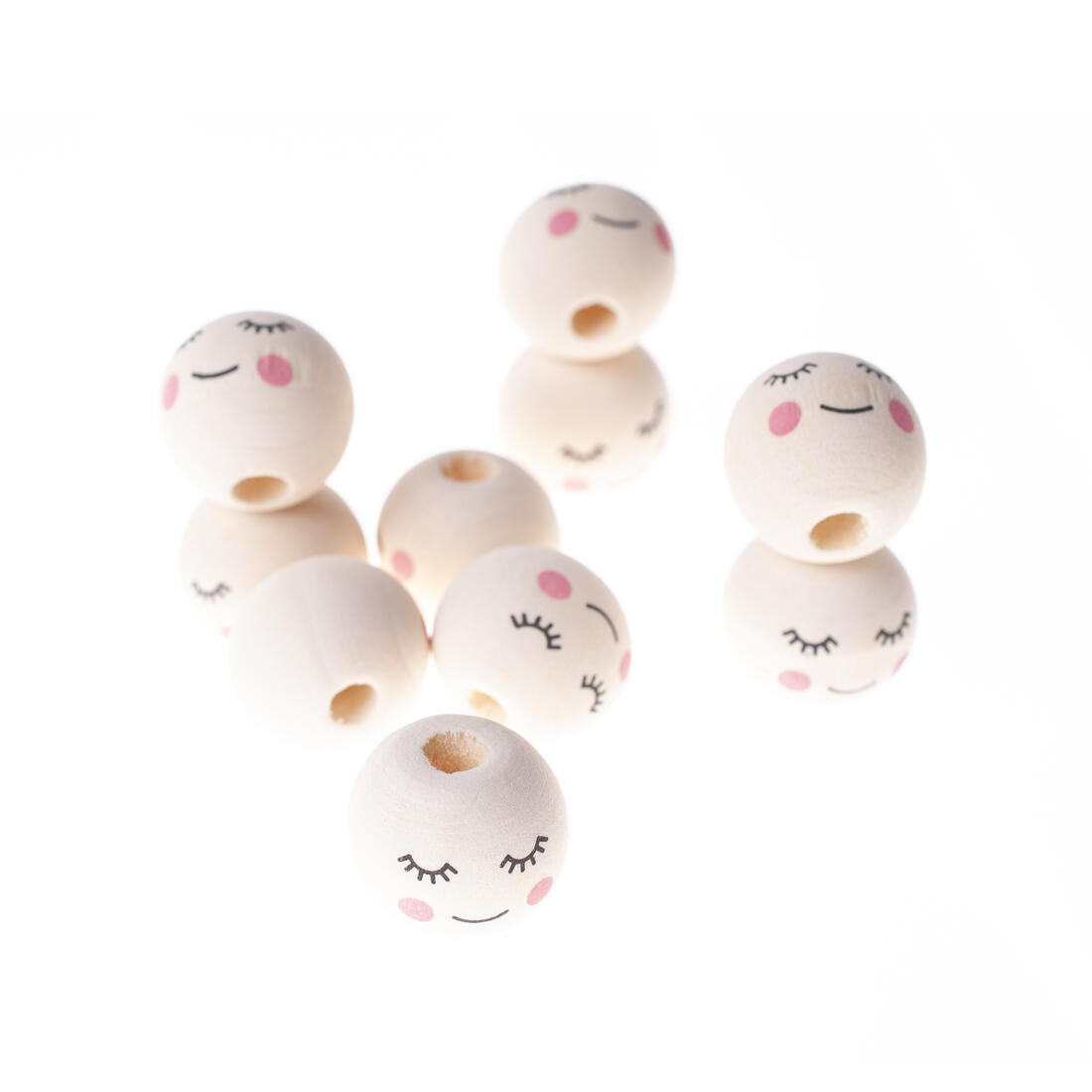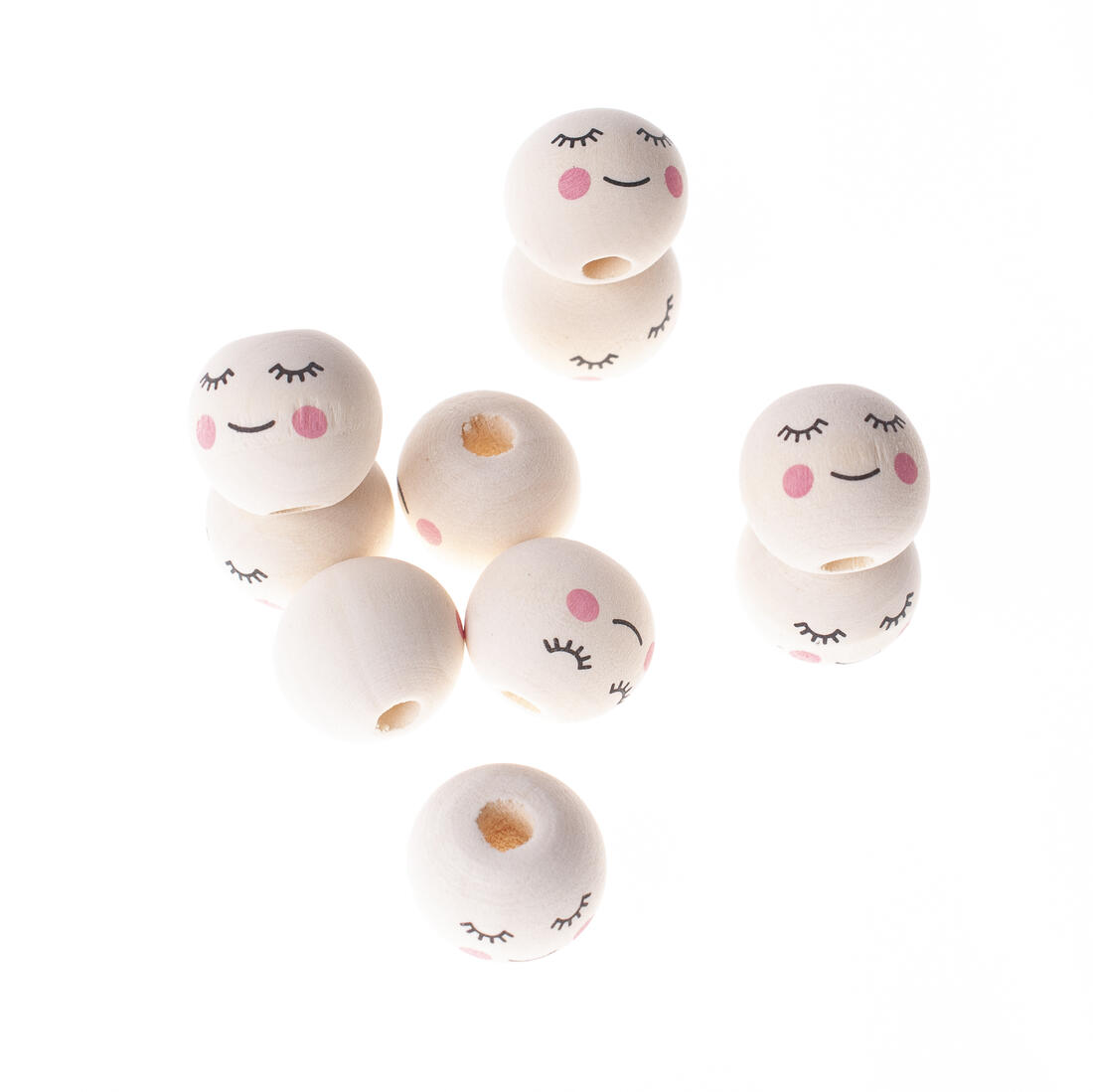 Houten kralen gezichtjes 2cm diameter 10 stuks