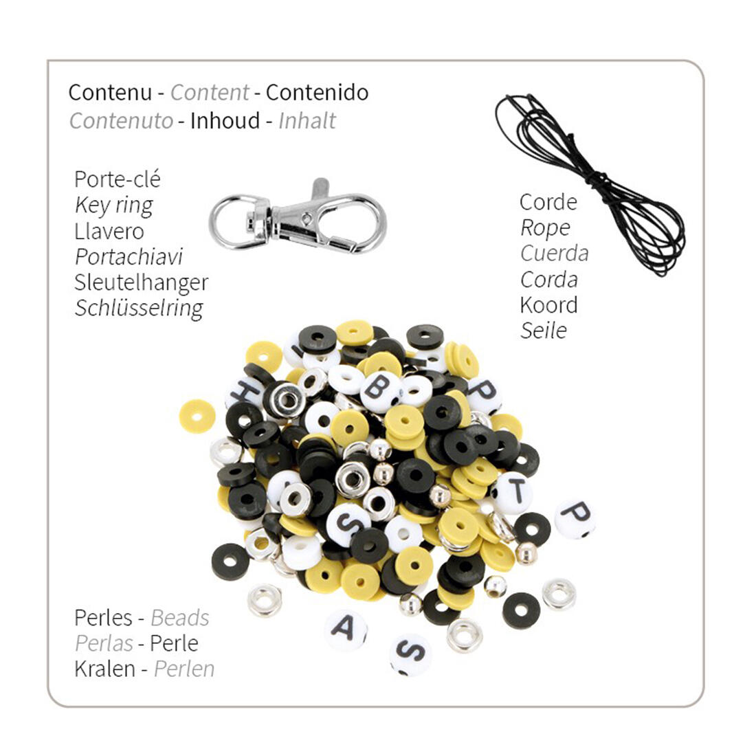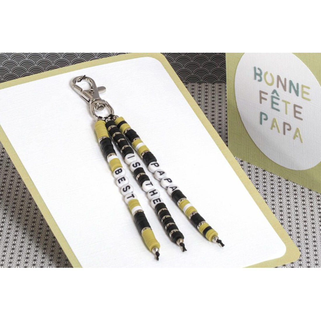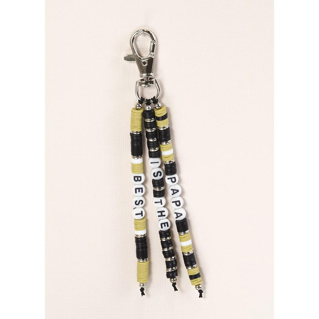 De set bevat een stijlvolle mix van zwarte, witte en goudkleurige kralen en letterkralen waarmee je de tekst Papa is the Best rijgt. Dankzij het meegeleverde koord en de stevige sleutelhanger met metalen sluiting kun je meteen aan de slag. Ideaal als knutselactiviteit voor Vaderdag of als kleine verrassing tussendoor.