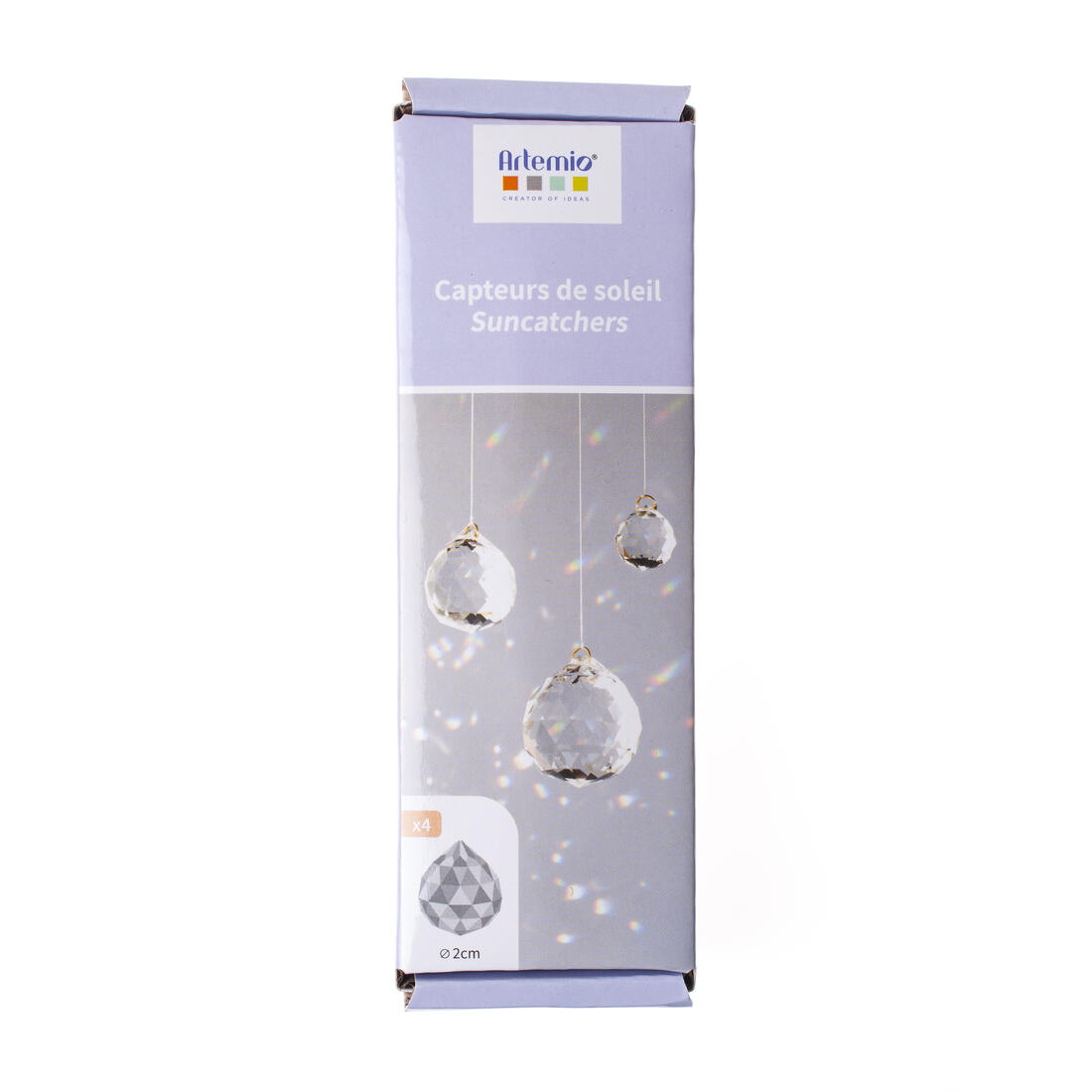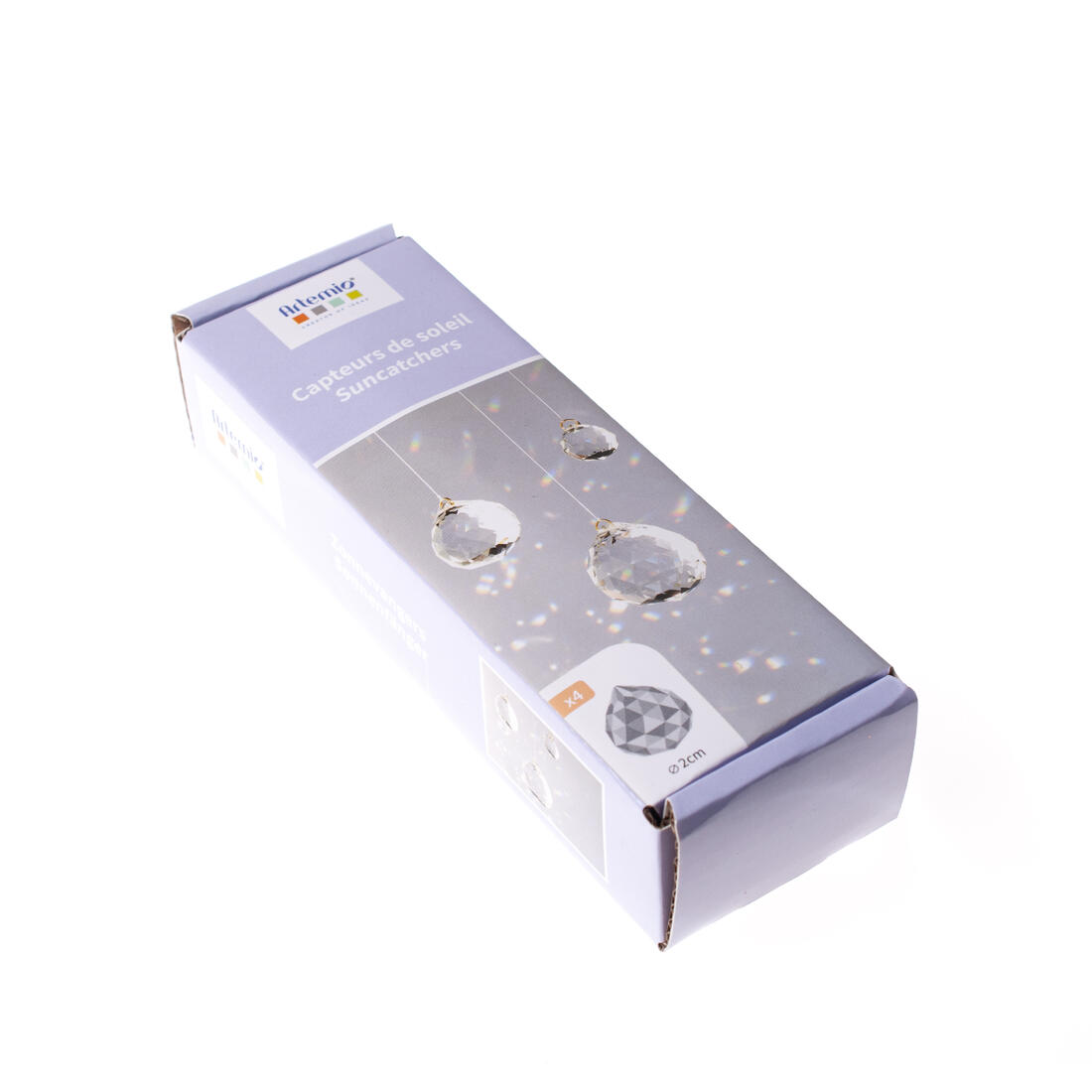 Deze zonnevanger van 4 cm brengt een magisch lichtspel in elke ruimte. Deze set van 2 transparante kristallen vangt het zonlicht en verspreidt schitterende regenboogkleuren zodra de zon erop valt. Perfect om op te hangen aan een raam, in de tuin of als decoratief accent bij creatieve projecten. De zonnevangers zijn gemaakt van hoogwaardig glas en zorgen voor een sfeervolle en rustgevende uitstraling.