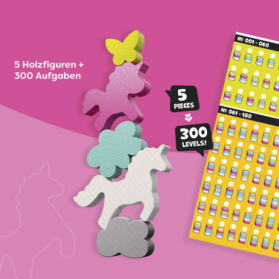 Een wiebelige uitdaging die om een vaste hand en precisie vraagt! Stapel tot vijf houten blokjes in de juiste volgorde. Met 300 opdrachten van makkelijk tot moeilijk.