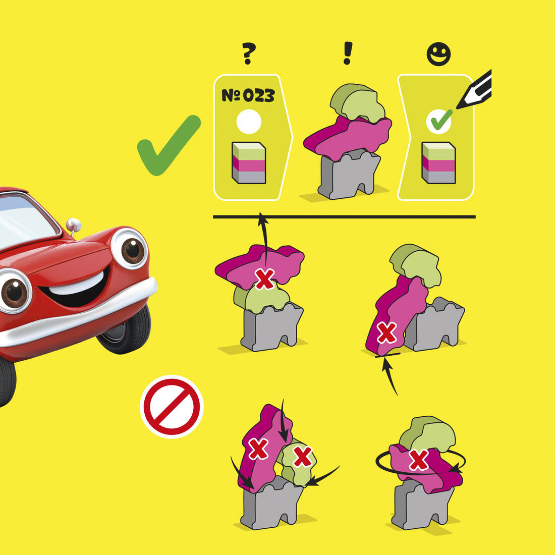 Een wiebelige uitdaging die om een vaste hand en precisie vraagt! Stapel tot vijf houten blokjes in de juiste volgorde. Met 300 opdrachten van makkelijk tot moeilijk.