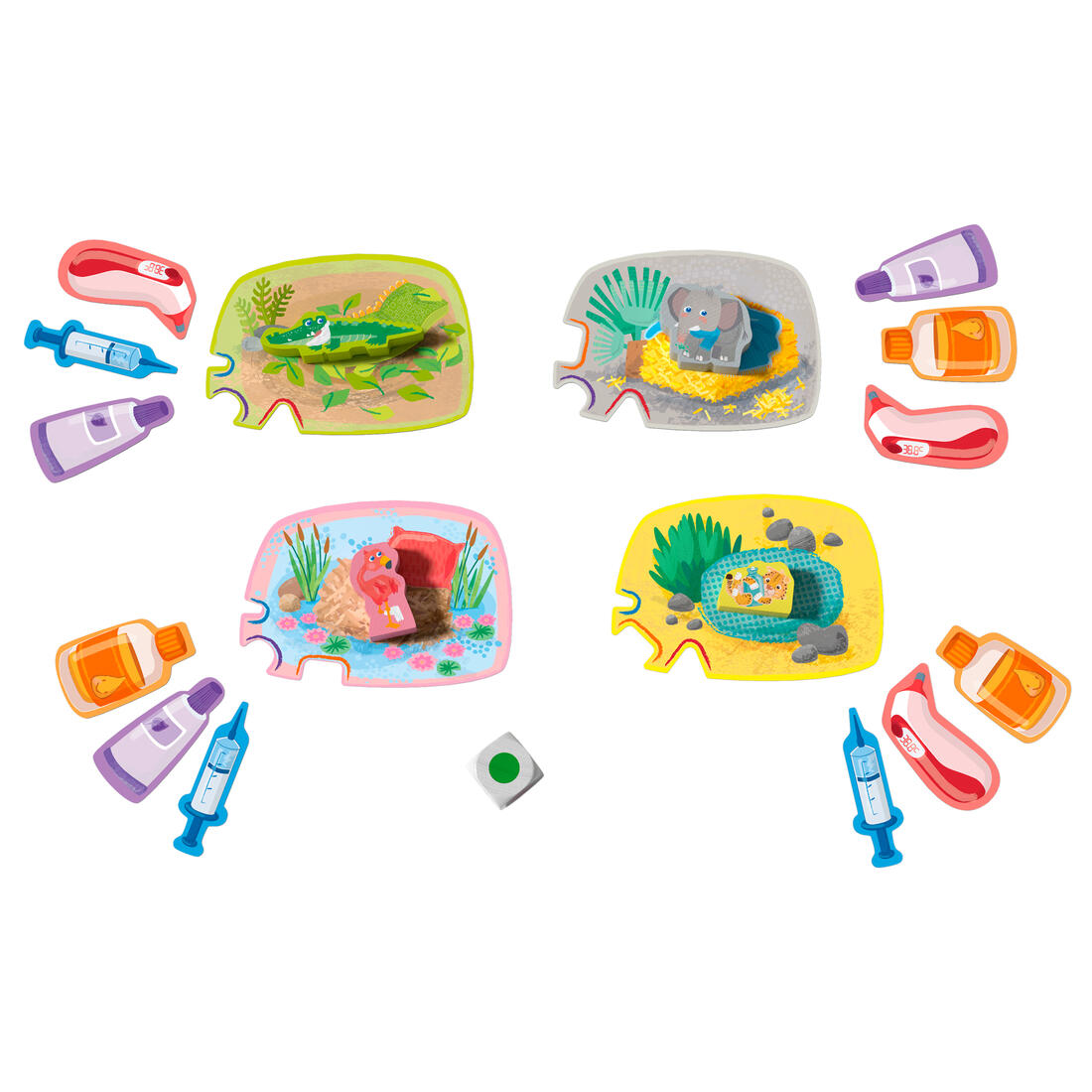 Een sorteerspel waarbij je moet proberen om de dieren op de juiste manier te verzorgen en weer beter te maken door de behandelkaartjes juist te ordenen. De dokterskoffer stimuleert het creatieve rollenspel.