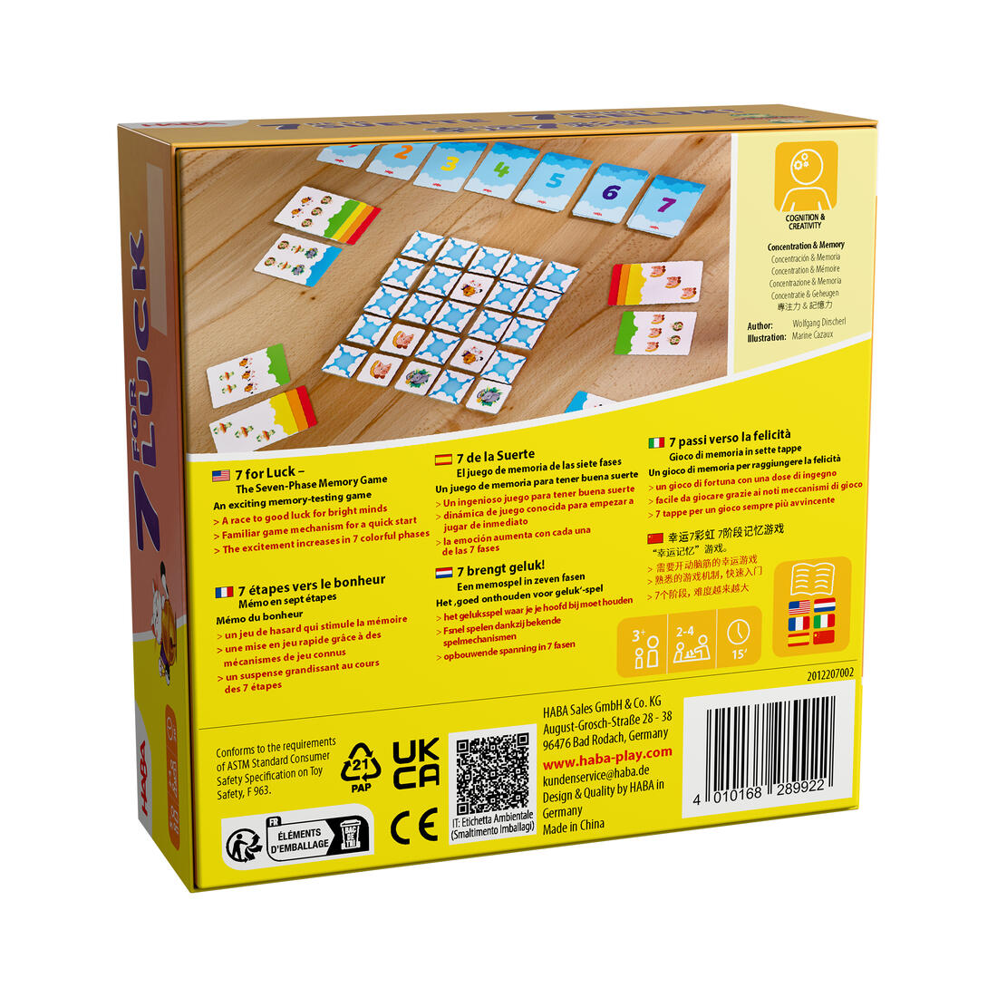 Op naar het geluk aan het einde van de regenboog! De weg daarheen loopt via 7 opdrachtkaarten en het onthullen van de gezochte geluksdieren. Wie als eerste alle 7 fasen beheerst, wint. Het 'goed onthouden voor geluk‘-spel!