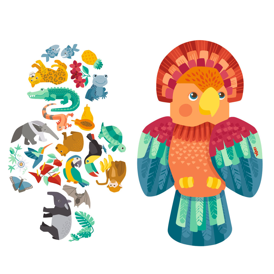Op de voorzijde een kleurrijke papegaai, op de achterzijde exotische dieren!