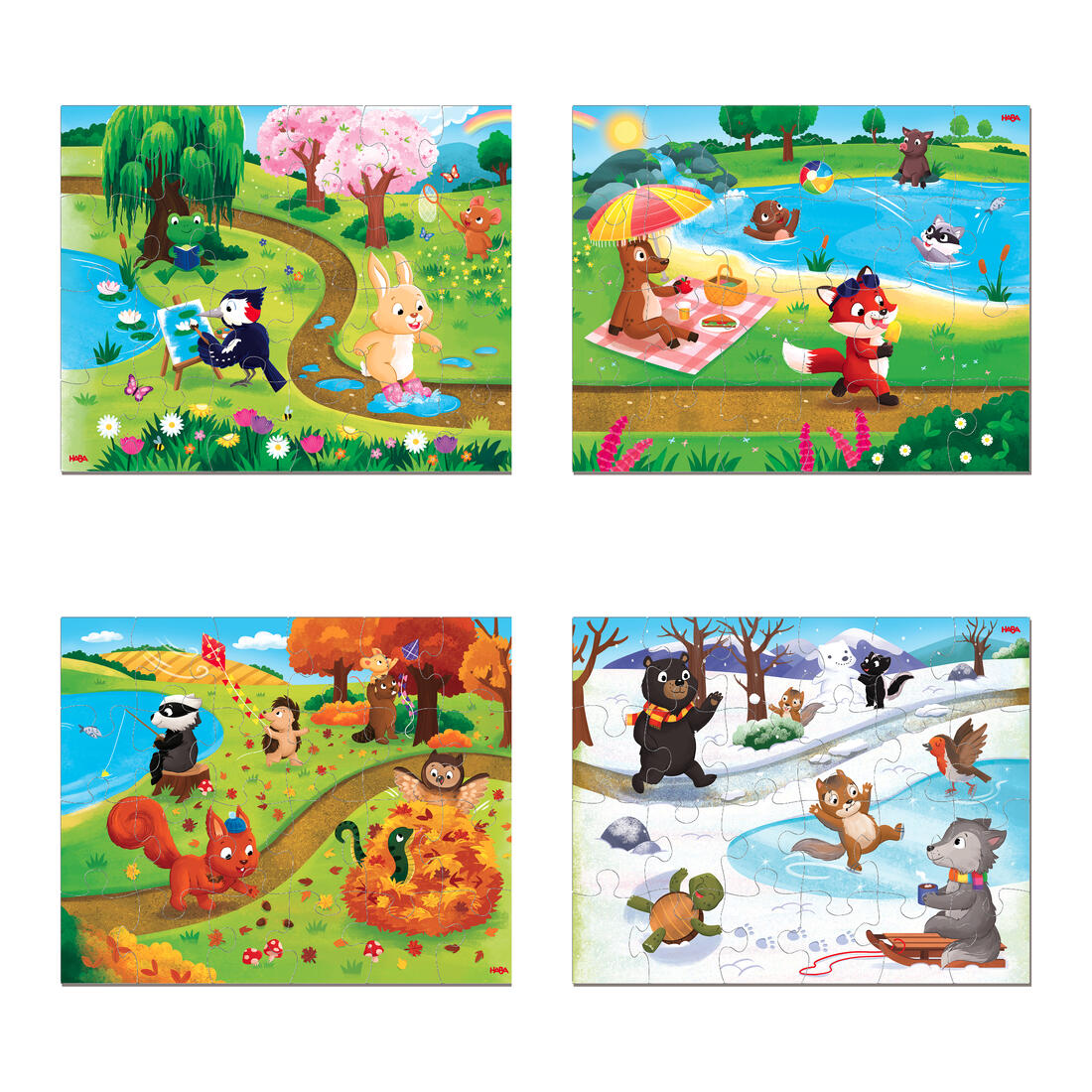 De 4 puzzelmotieven of seizoenen vormen samen een groot panorama.