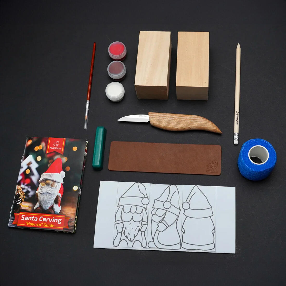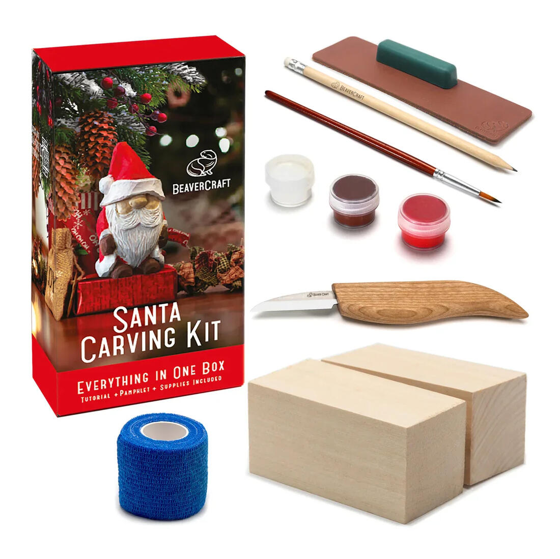 In deze set krijg je alle gereedschappen, materialen en benodigdheden die je nodig hebt om de Kerstman uit hout te snijden: een perfect geslepen houtsnijmes, twee blokken hoogwaardig lindehout, slijpaccessoires (wetsriem + polijstpasta), beschermende anti-cut tape en kunstbenodigdheden (potlood, kwast en verf) om je doe-het-zelf-project met de Kerstman een unieke, afgewerkte look te geven.