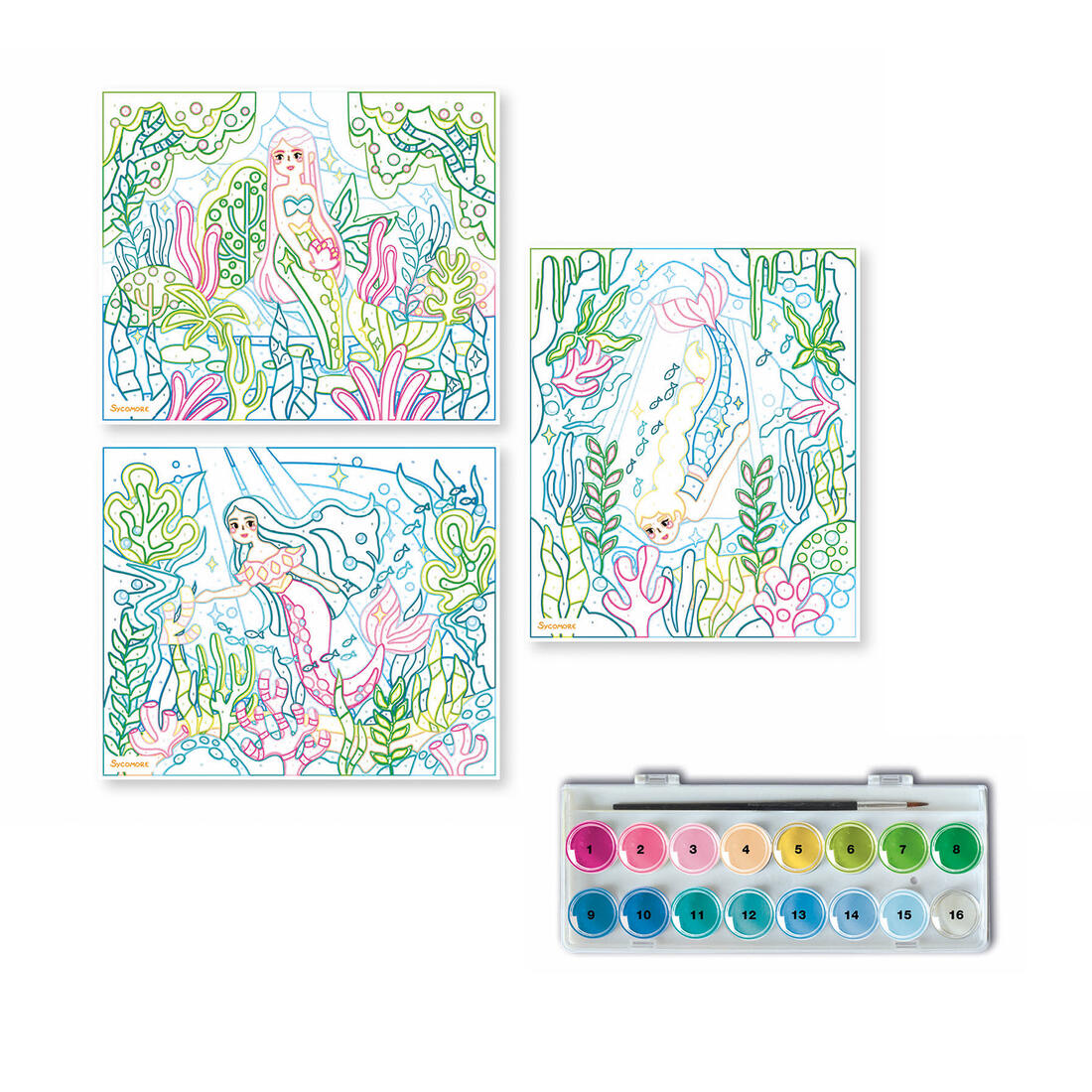 Het schilderij zal langzaam tot leven komen met elke kleur die je toevoegt. Volg de nummers op de tekening en geef de zeemeerminnen kleur.