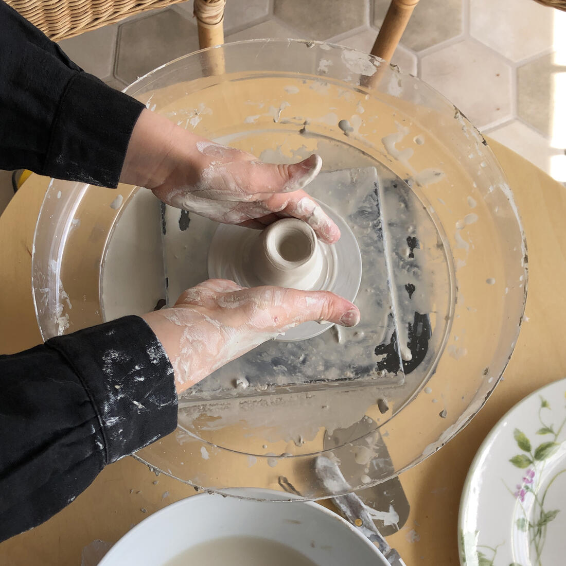 Een echte pottenbakkers draaischijf, compact en makkelijk op te bergen.