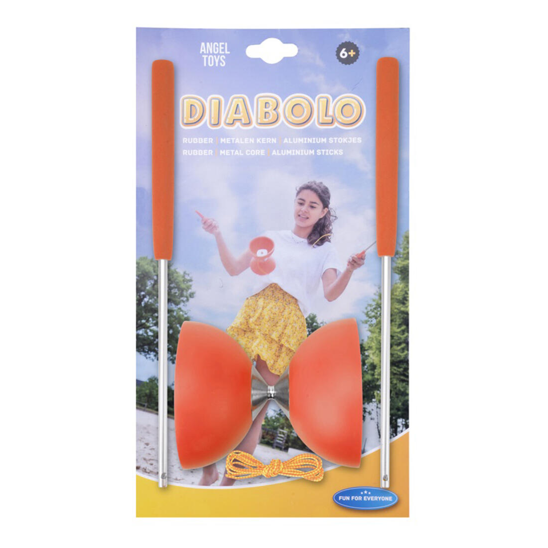 Diabolo 'intro' oranje 10,5 cm rubber met metalen stokken
