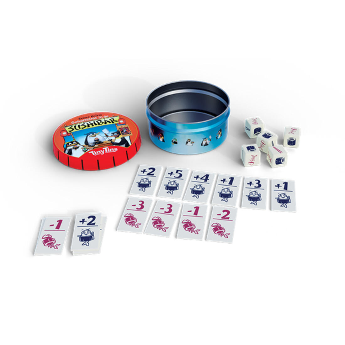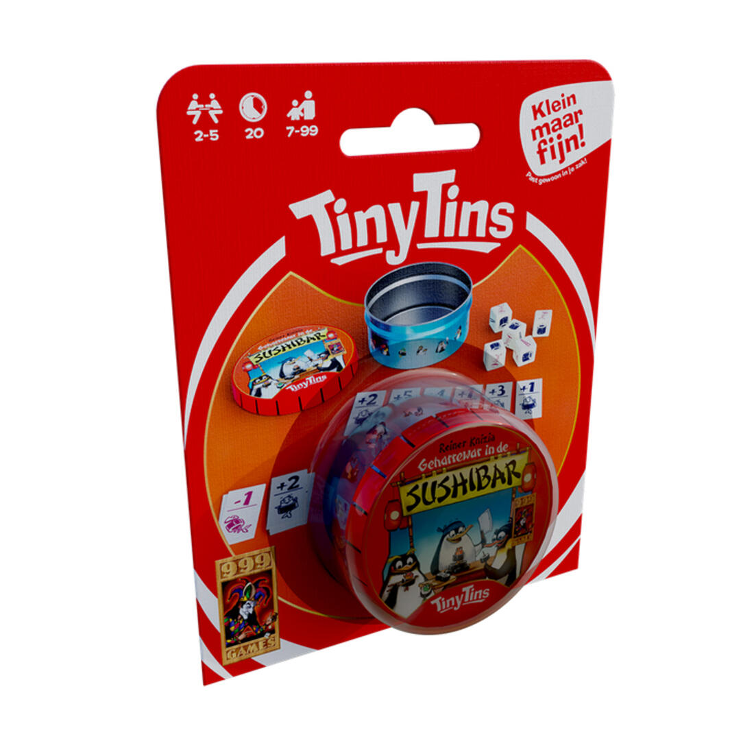 Met deze handige Tiny Tin kan dat gewoon! Het grote plezier van het spel, maar dan in miniformaat! Zo kun je overal waar je bent bewijzen dat jij de beste sushi kunt maken!