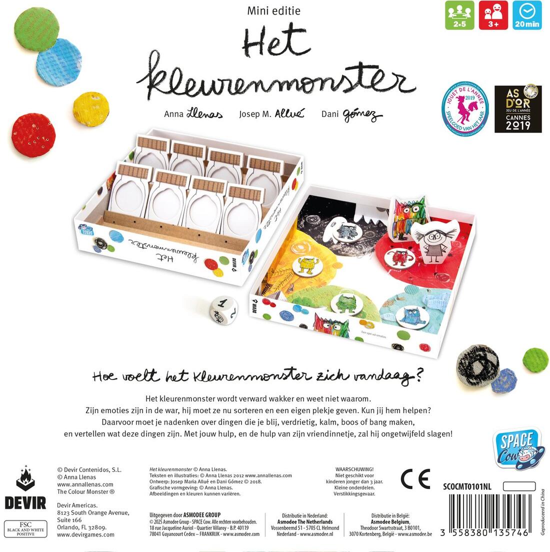 Het monster wordt helemaal verward wakker en weet niet waarom. Zijn emoties zijn een puinhoop. Nu moet hij ze sorteren en terugleggen waar ze horen. Wil je hem helpen? Eerst moet je nadenken over dingen die je blij, verdrietig, kalm, boos of bang maken. Daarna stop je deze emoties terug in hun pot. Met jouw hulp, en die van zijn jonge vriend, kan dit lieve monster zijn emoties weer op orde krijgen.