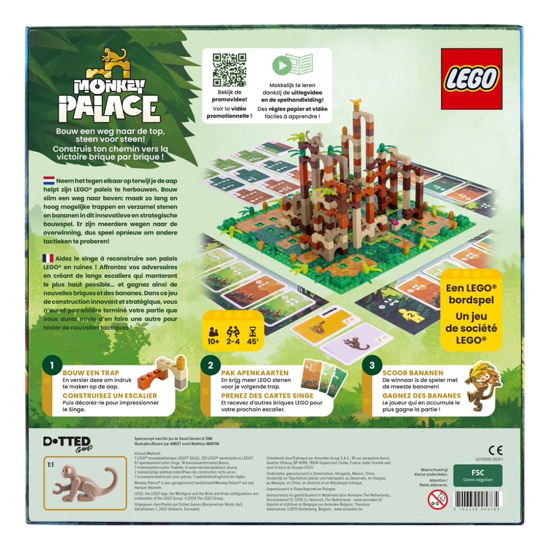 Spelers werken strategisch samen om het Apenpaleis op te bouwen, terwijl ze concurreren om de meeste stenen en punten te verzamelen, allemaal onder het waakzame oog van de Aap. Het paleis neemt geleidelijk vorm aan, wat leidt tot een indrukwekkende constructie van LEGO-elementen die spelers met trots in huis kunnen tentoonstellen. Het iconische LEGO System in Play zorgt ervoor dat elke speelsessie een unieke bouwervaring en eindconstructie oplevert.