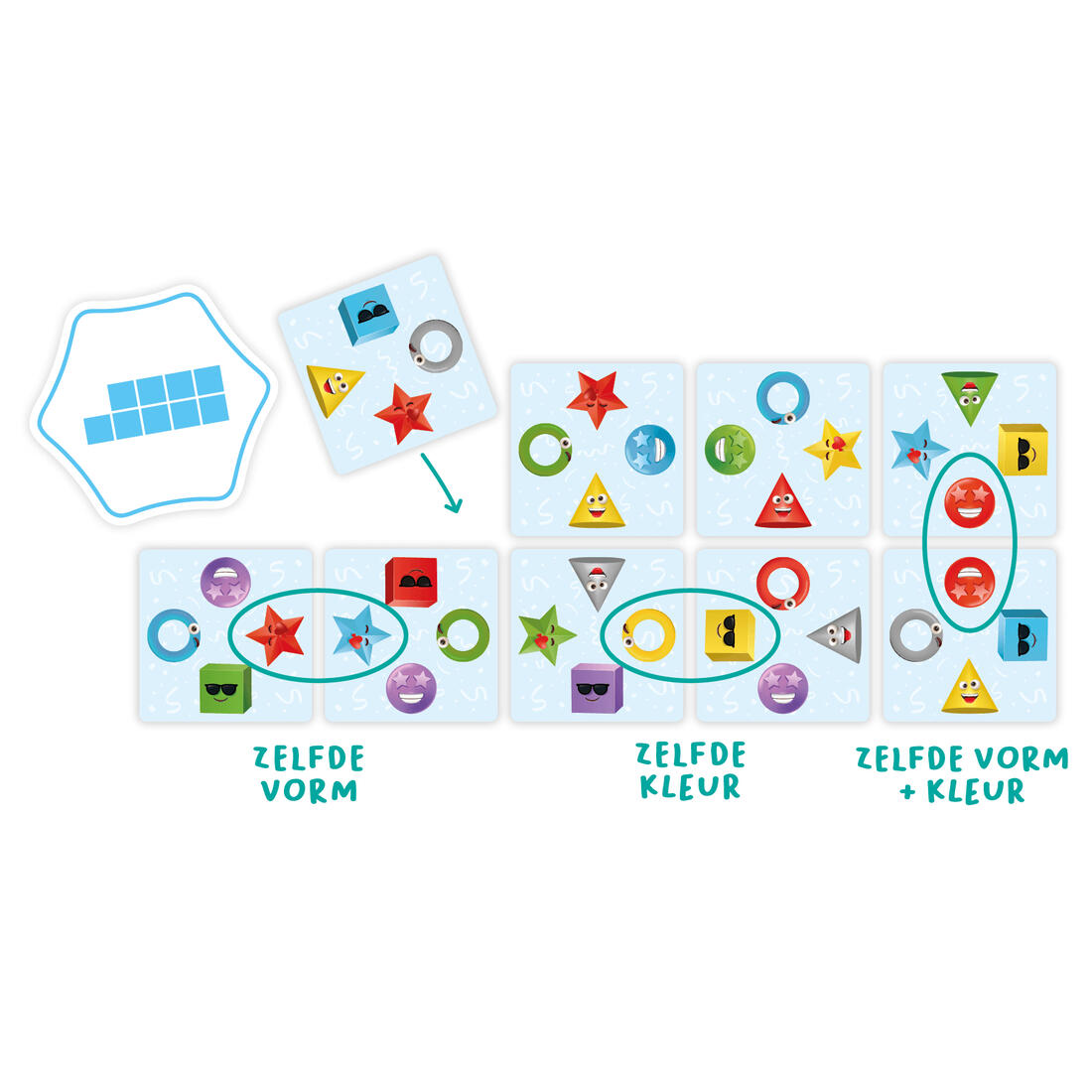 Pattern Party: Streef ernaar als eerste het getoonde patroon met je speelkaarten na te bootsen en bemachtig de patroonkaart! De aangrenzende afbeeldingen dienen identiek te zijn in vorm OF kleur OF beide. Wees flexibel: blijf ruimdenkend en herschik indien nodig je reeds geplaatste kaarten om het correcte patroon te creëren! Verzamel de meeste kaarten en zegevier!