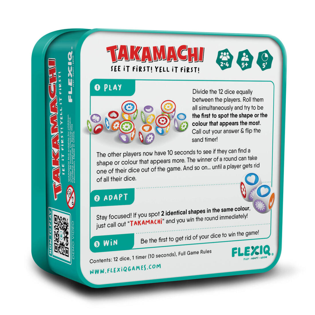 Probeer als eerste om de meest zichtbare vorm of kleur te zien… of een TAKAMACHI! Een eenvoudig concept, maar uitdagend om te winnen!