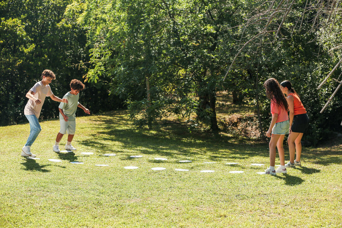 Maar in Dobble Giant moet je snel zoeken en ook snel zijn! Want je moet verplaatsen van kaart naar kaart! Dankzij de grote kaarten is dit spel perfect om buiten of op een grote binnenplaats te spelen. Observatieduels worden echte fysieke uitdagingen in teams of tussen alle spelers! Ren, spring, vorm teams en ga vier nieuwe uitdagingen aan! Speel in teams, in een cirkel, solo of in estafettevorm.