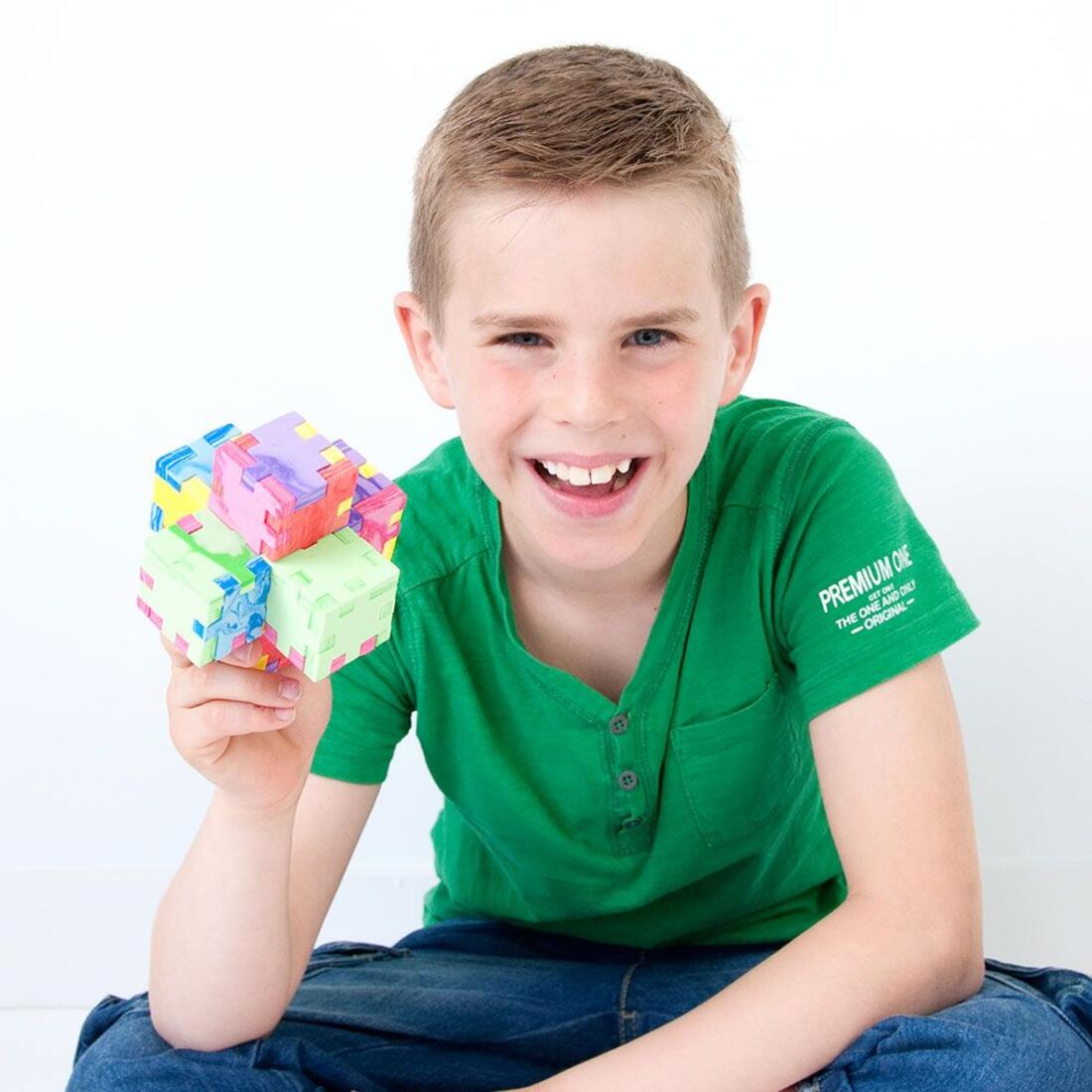 Uren speelplezier... Een moeilijke uitdaging voor iedereen! Met elk van de 6 kleuren kan een kubus gemaakt worden. Het is echter ook mogelijk om de kleuren te combineren tot grotere vormen.