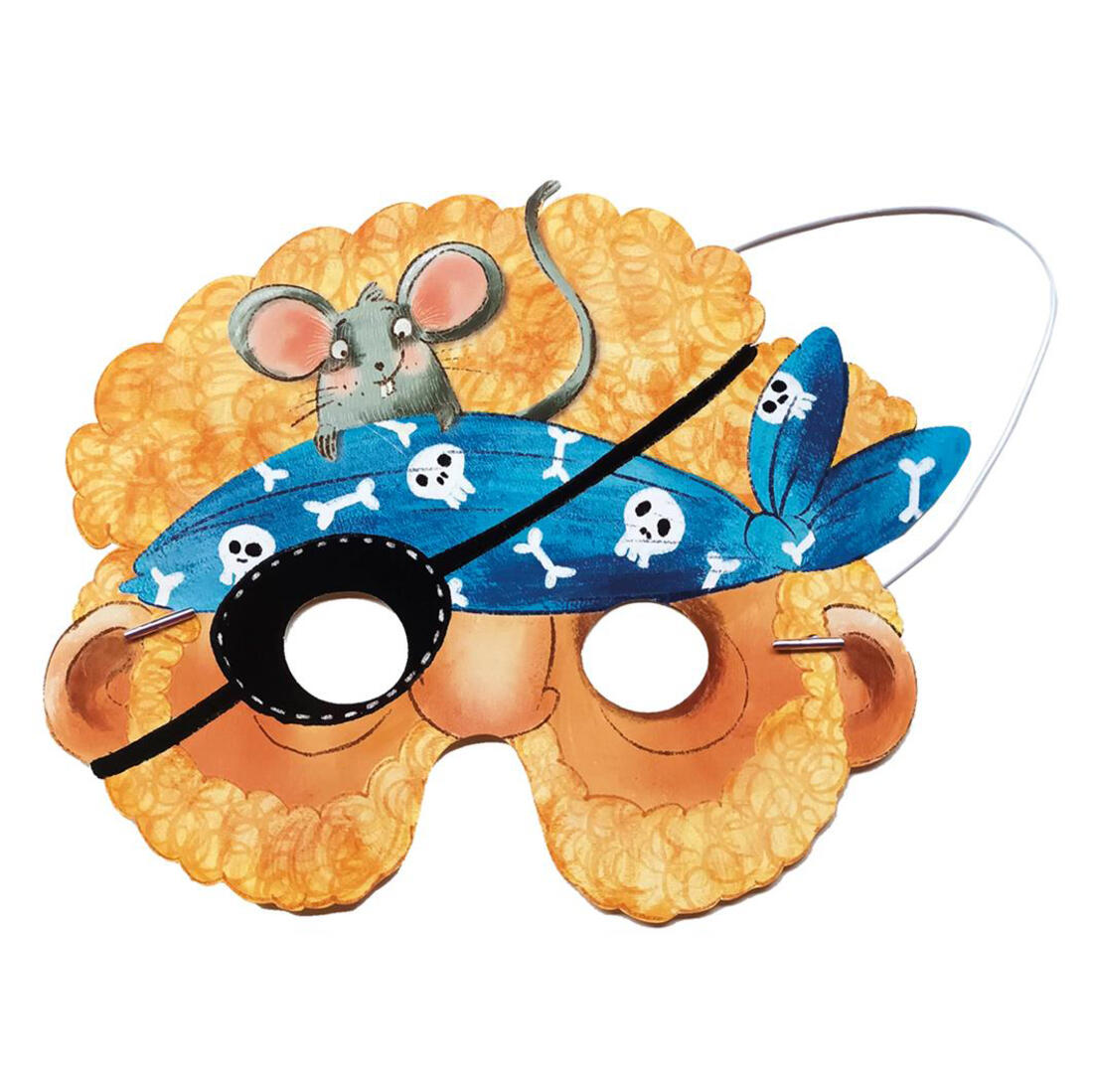 Deze verkleedset van Fridolin bestaat uit 5 verschillende kartonnen maskers van 20 cm doorsnede met een elastiek, 5 leuke medailles en 5 bijpassende plooidoosjes (8,5 x 6,5 x 7,5 cm).