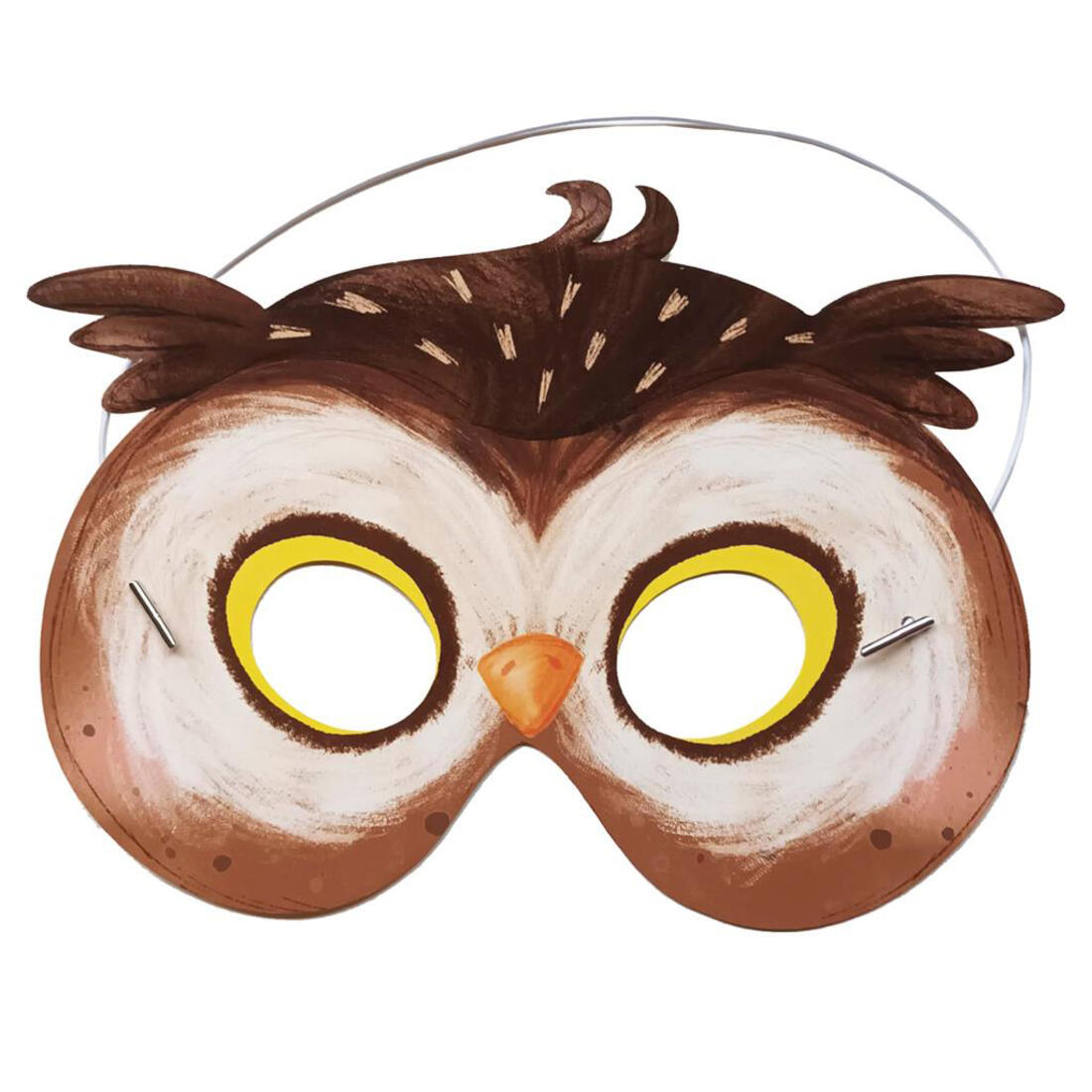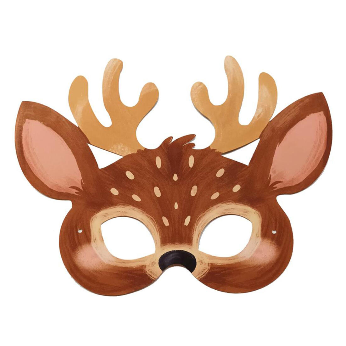 Deze verkleedset van Fridolin bestaat uit 5 verschillende kartonnen maskers van 20 cm doorsnede met een elastiek, 5 leuke medailles en 5 bijpassende plooidoosjes (12 x 9,5 x 2,5 cm).