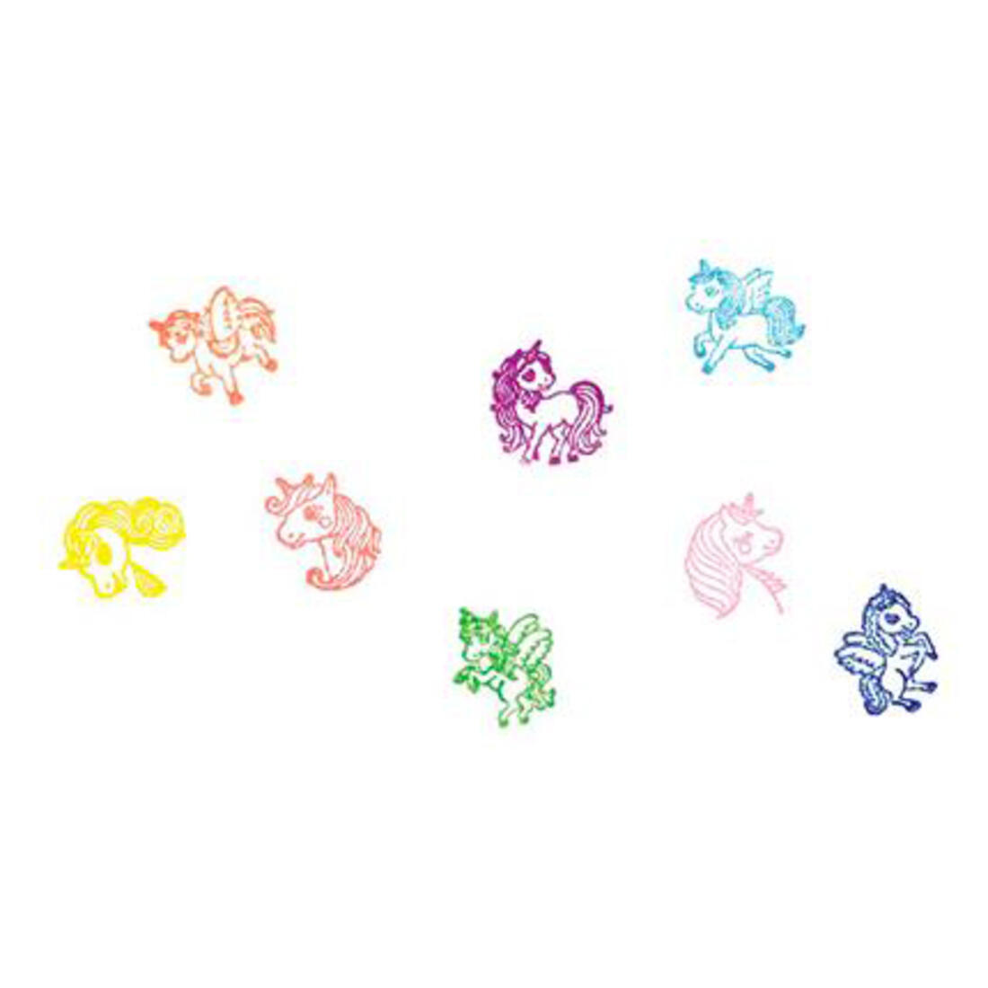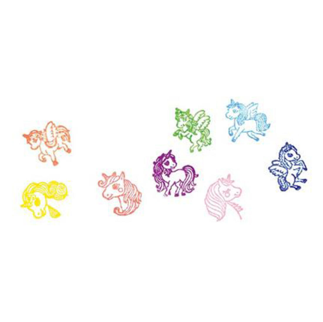 Leuk stempelsetje van 8 verschillende eenhoorns.