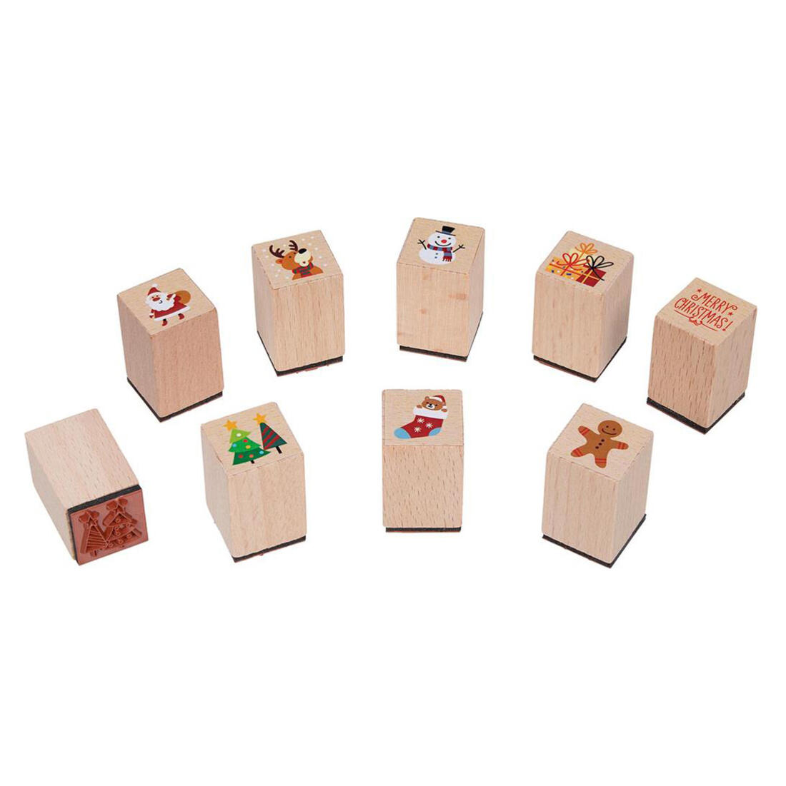 Leuk stempelsetje met 8 verschillende kerststempels.