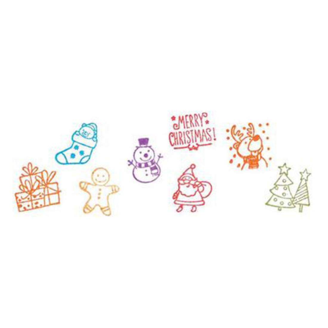 Op de kleine stempeltjes vind je een kerstboom, pakjes, sneeuwman, kerstwens enz.