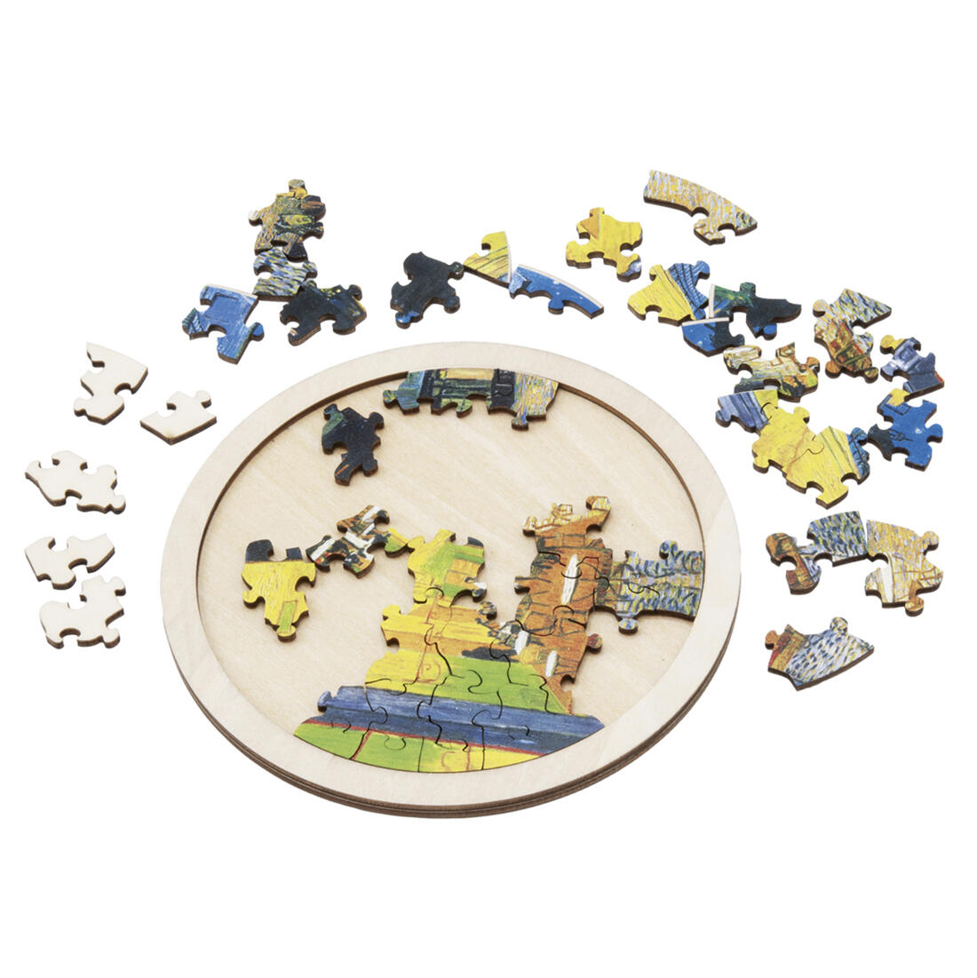 Kunstpuzzel met 48 houten puzzelstukjes.