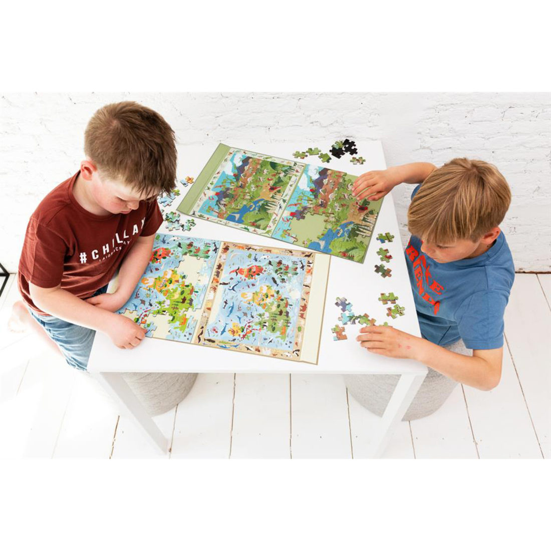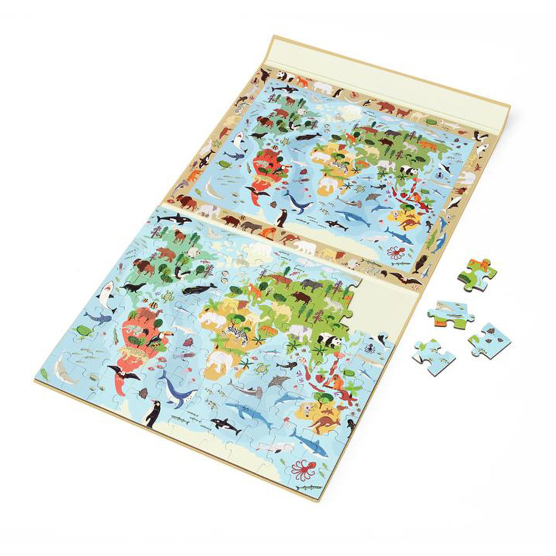 Deze magnetische 2-in-1 discovery-puzzel van de wereld is superhandig en zowel thuis als onderweg te gebruiken. De puzzelstukken zijn magnetisch en blijven aan het uitklapbare bord vastzitten. Zo raak je nooit meer puzzelstukken kwijt. Na het puzzelen start het zoeken naar de aangegeven dieren op de wereldkaart.