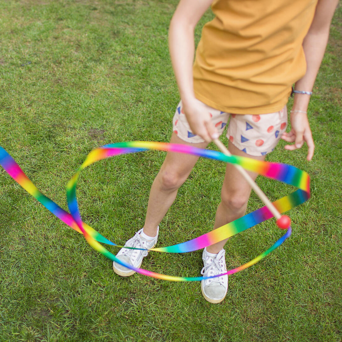 Een mooi, fleurig lint aan een stokje dat samen met je danst en rondhuppelt!