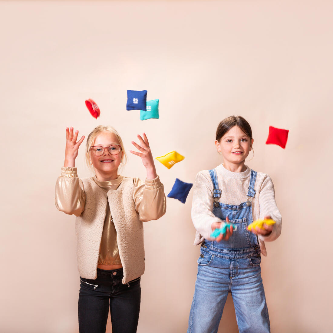 Een set van acht kleurrijke pittenzakken en zes leuke spelletjes.