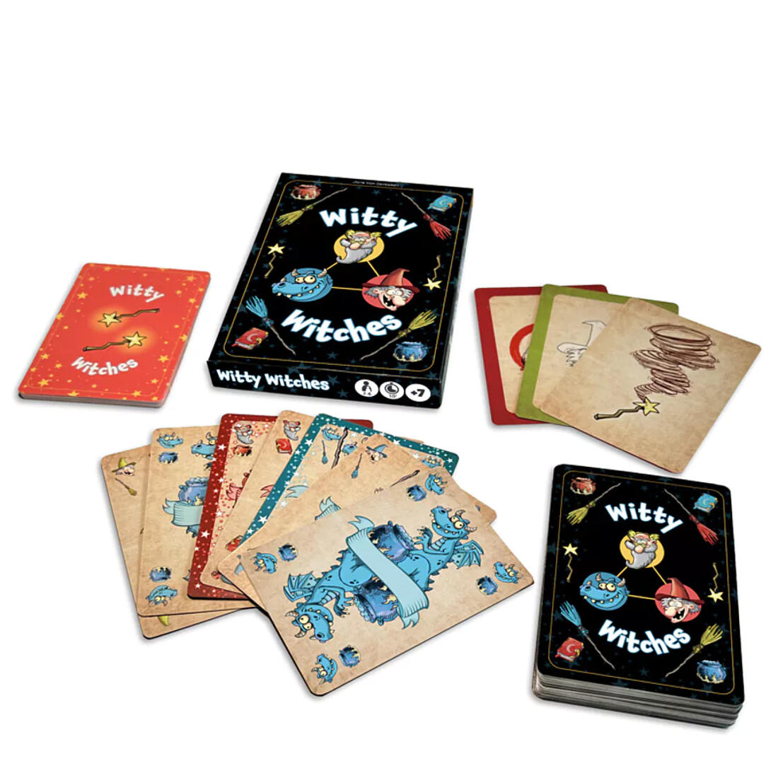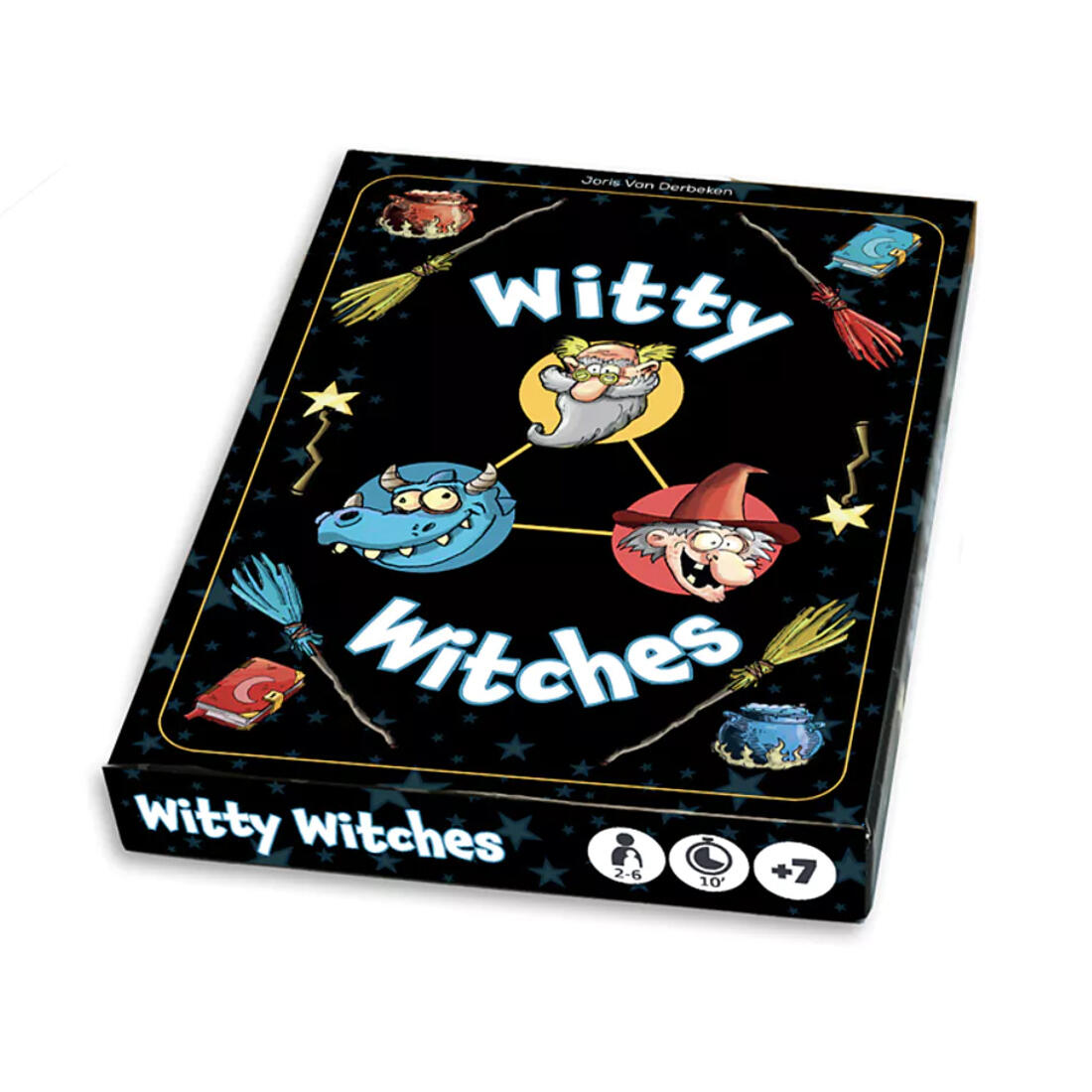 Loods je magische figuren als eerste binnen op het feest met dit kaartspel Witty Witches. Maar pas op, sommige personages kunnen toveren.