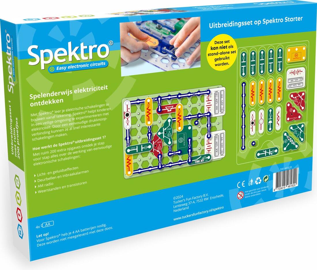 Hoe werkt de Spektro®-uitbreidingsset 1? Met ruim 200 extra opgaves ontdek je stap voor stap alles over de werking van eenvoudige elektronische schakelingen: licht- en geluidseffecten , deurbellen en inbraakalarmen, AM radio en weerstanden en transistoren.