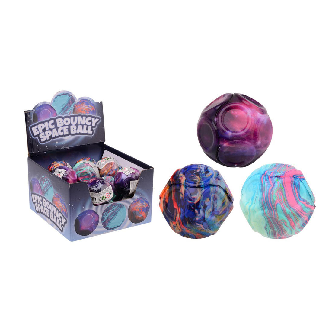 De bal is 6 cm groot en heeft 12 afgevlakte zijden. Hij botst heerlijk hoog en stuitert alle kanten uit.