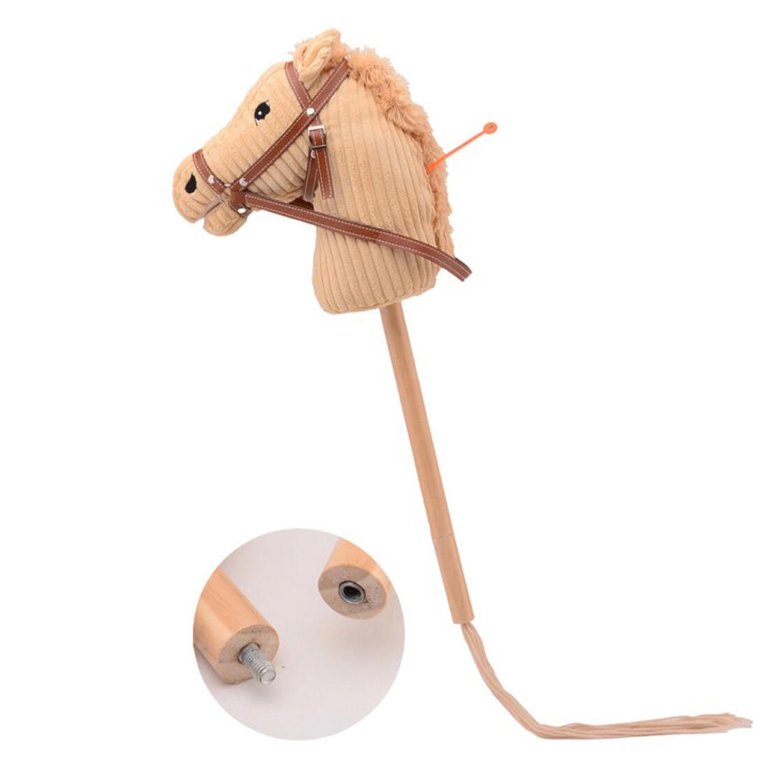 Stokpaardje met zacht, bruin hoofd en geluid 80 cm