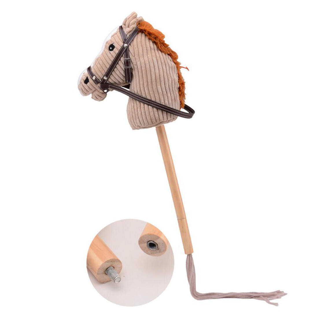 Stokpaardje met zacht, beige hoofd en geluid 80 cm