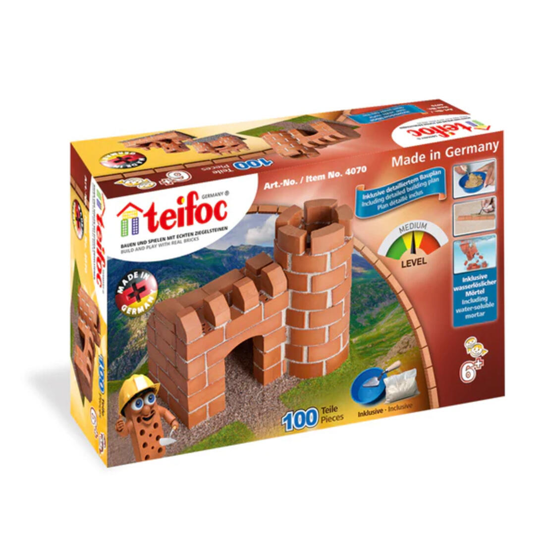 Teifoc bouwpakketten bieden kleine architecten en bouwers alles wat ze nodig hebben, van gedetailleerde instructies en een mortelkom met troffel tot de bouwmaterialen en mortel.