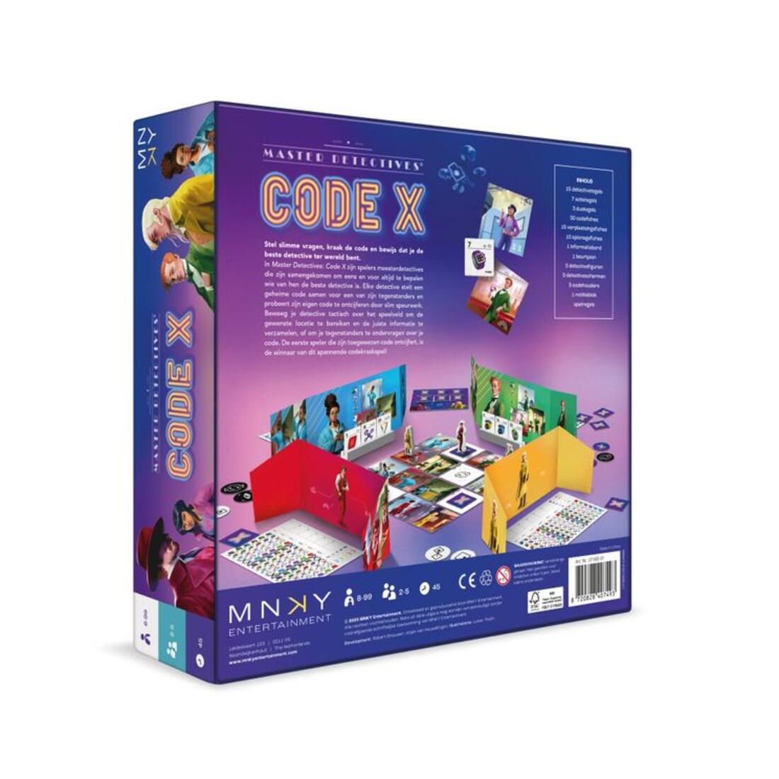 In Master Detectives: Code X zijn de spelers meesterdetectives die samen komen om voor eens en altijd te bepalen wie van hen de beste speurneus is. Elke detective stelt een geheime code samen voor een van zijn tegenstanders en probeert zijn eigen code te ontcijferen door slim speurwerk. Beweeg je detective tactisch over het speelveld om de gewenste locatie te bereiken en de juiste informatie te verzamelen, of om je tegenstanders te ondervragen over je code. De eerste speler die zijn toegewezen code ontcijfert, is de winnaar van dit spannende codekraakspel!