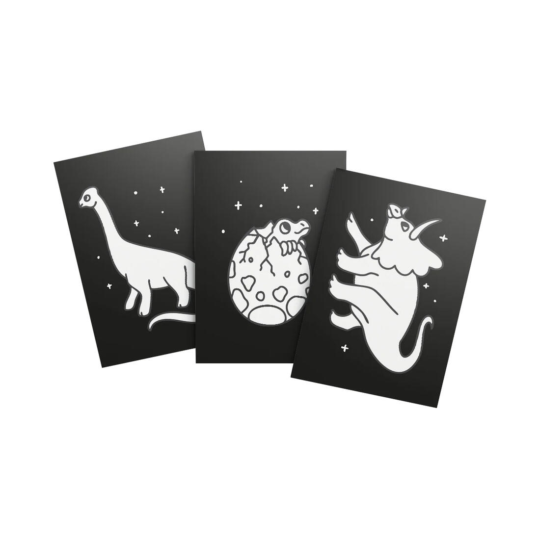 • 3 dinosaurusillustraties per set