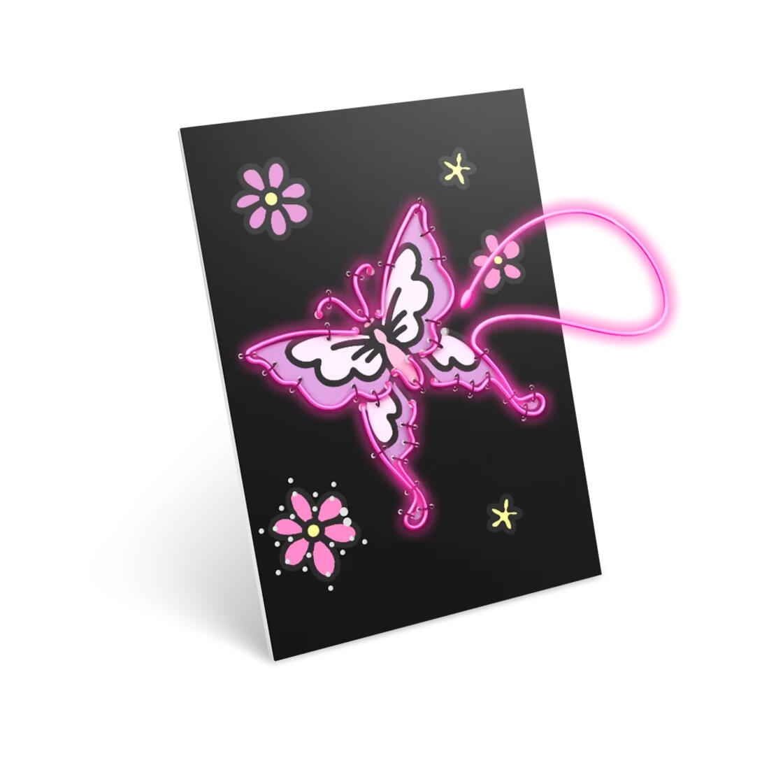 Breng de sprookjeswereld tot leven met deze Kidyneon kit! Door de afbeeldingen in te kleuren en de roze LED-lichtdraad te bevestigen, maken kinderen een indrukwekkende dinowanddecoratie.