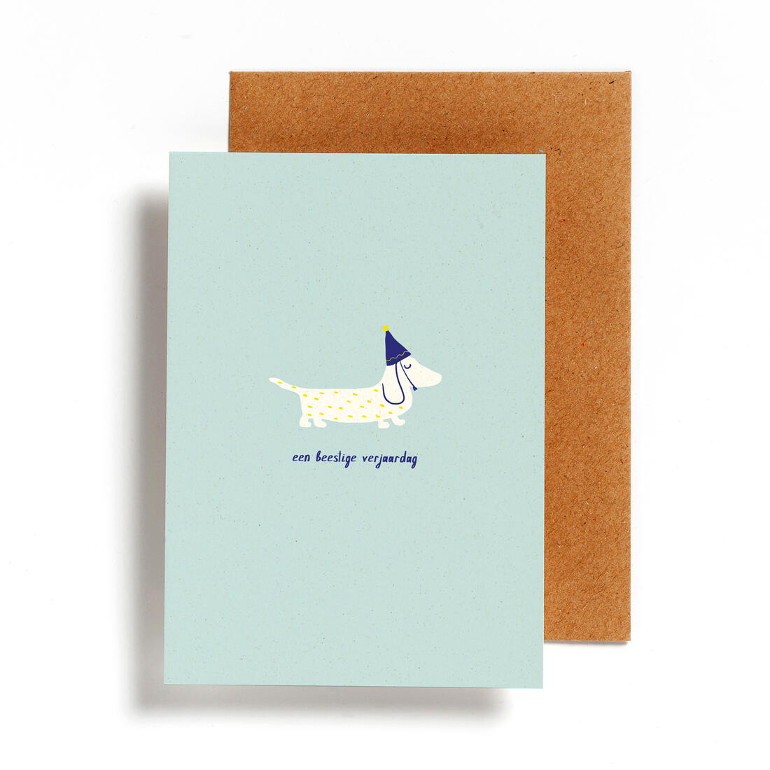 Een gelukkige verjaardag voor een echt feestbeest. De achterzijde is blanco, dus ideaal om je eigen tekst op te noteren.
