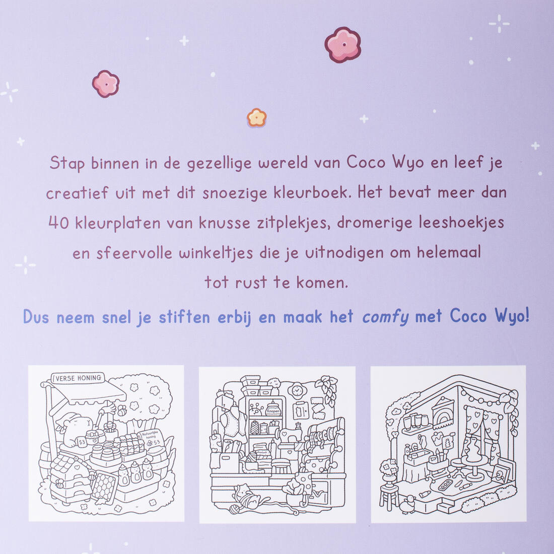 Stap dus snel binnen in de gezellige wereld van Coco Wyo en ontdek een heleboel ‘cozy’ hoekjes om in te kleuren! Knusse zitplekjes, dromerige leeshoekjes, sfeervolle winkeltjes… Leef je uit met de kleurplaten en geniet van een heerlijk ontspannen moment voor jezelf.