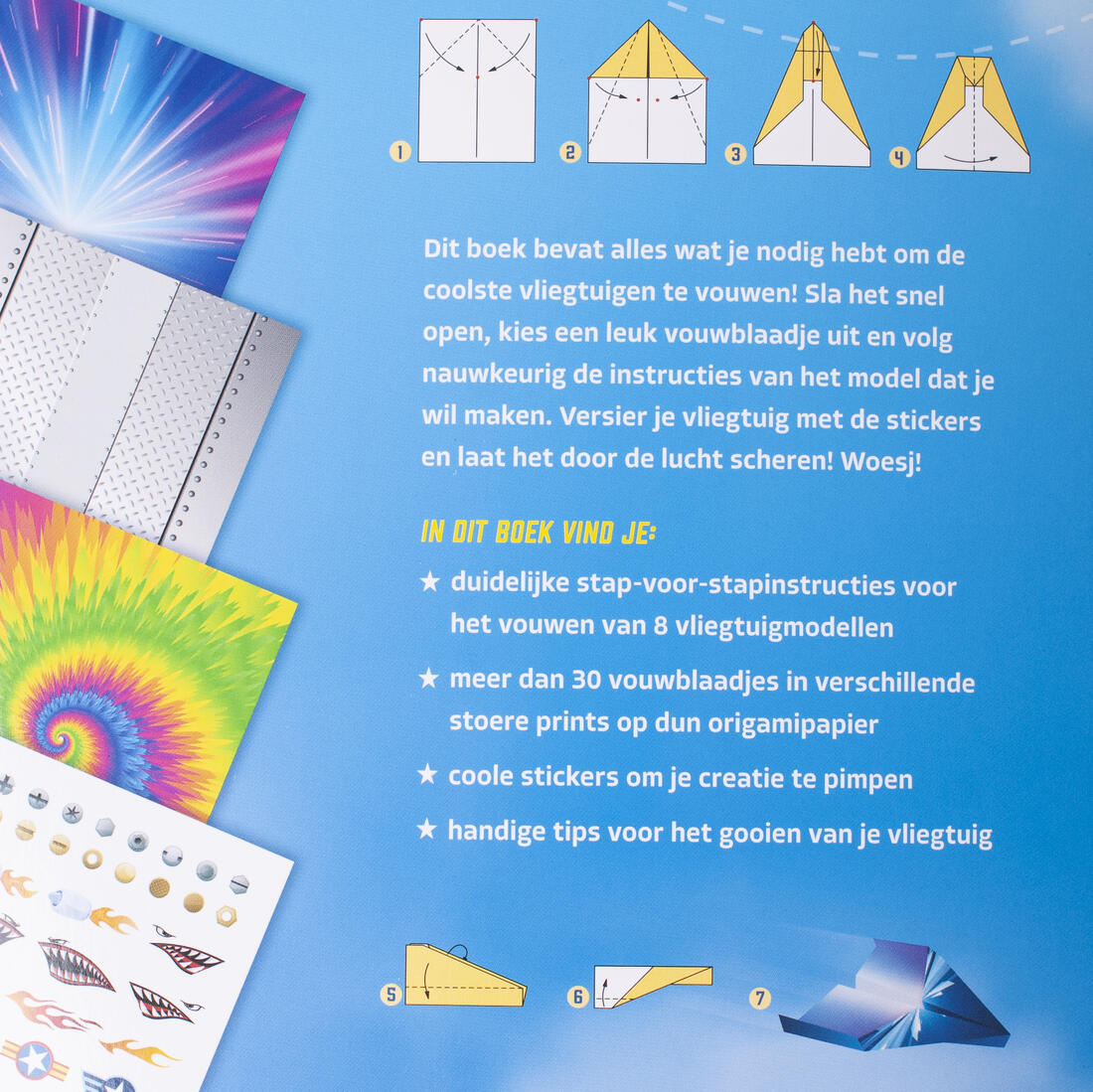 Kies je voor een zweeftopper, een speedvlieger of een megaracer? Deze stoere vliegtuigjes en nog veel meer leuke modellen vind je in dit boek. Sla het snel open, kies een leuk vouwblaadje uit en volg nauwkeurig de instructies van het model dat je wilt maken. Versier je vliegtuig met de stickers en laat het door de lucht scheren!