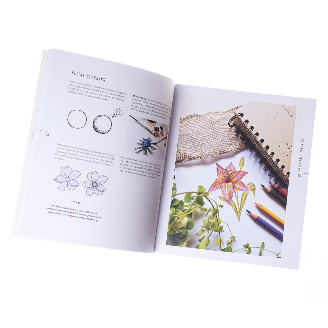 Bovendien mag je bij het tekenen van bloemen het perfect kloppen van verhoudingen best een beetje loslaten. Met wat oefening kun je al snel een madeliefje eenvoudig omvormen tot een gerbera, zonnebloem of aster. Daarnaast ontdek je met welke materialen en technieken je het best aan de slag kunt gaan.