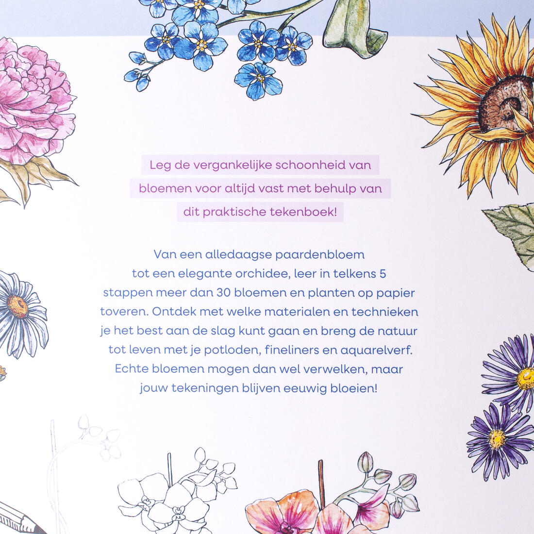Van een alledaagse paardenbloem tot een elegante orchidee, dit boek leert je in telkens 5 stappen verschillende bloemen en planten op papier te toveren.