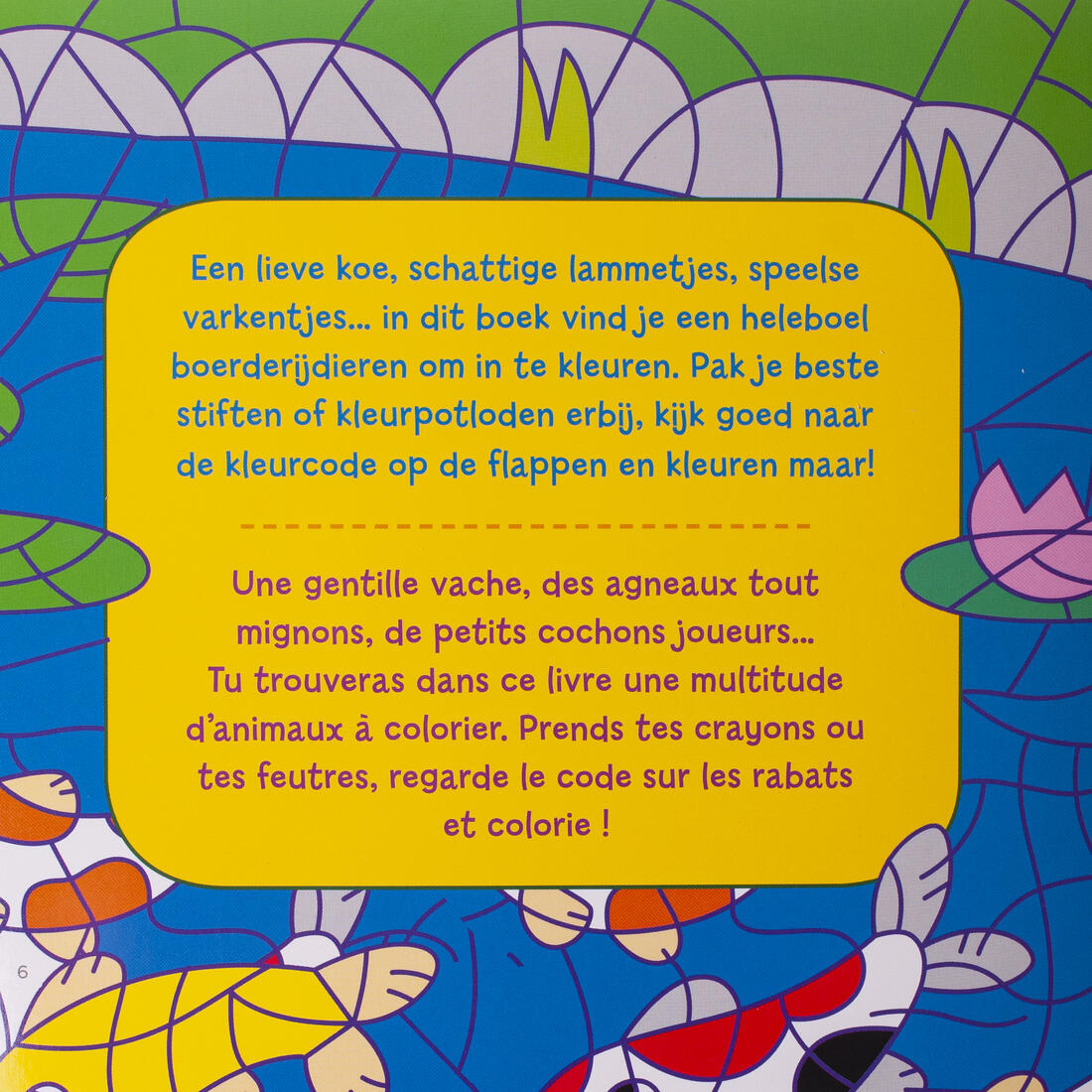 Een lieve koe, schattige lammetjes, speelse varkentjes... in dit boek vind je een heleboel boerderijdieren om in te kleuren.