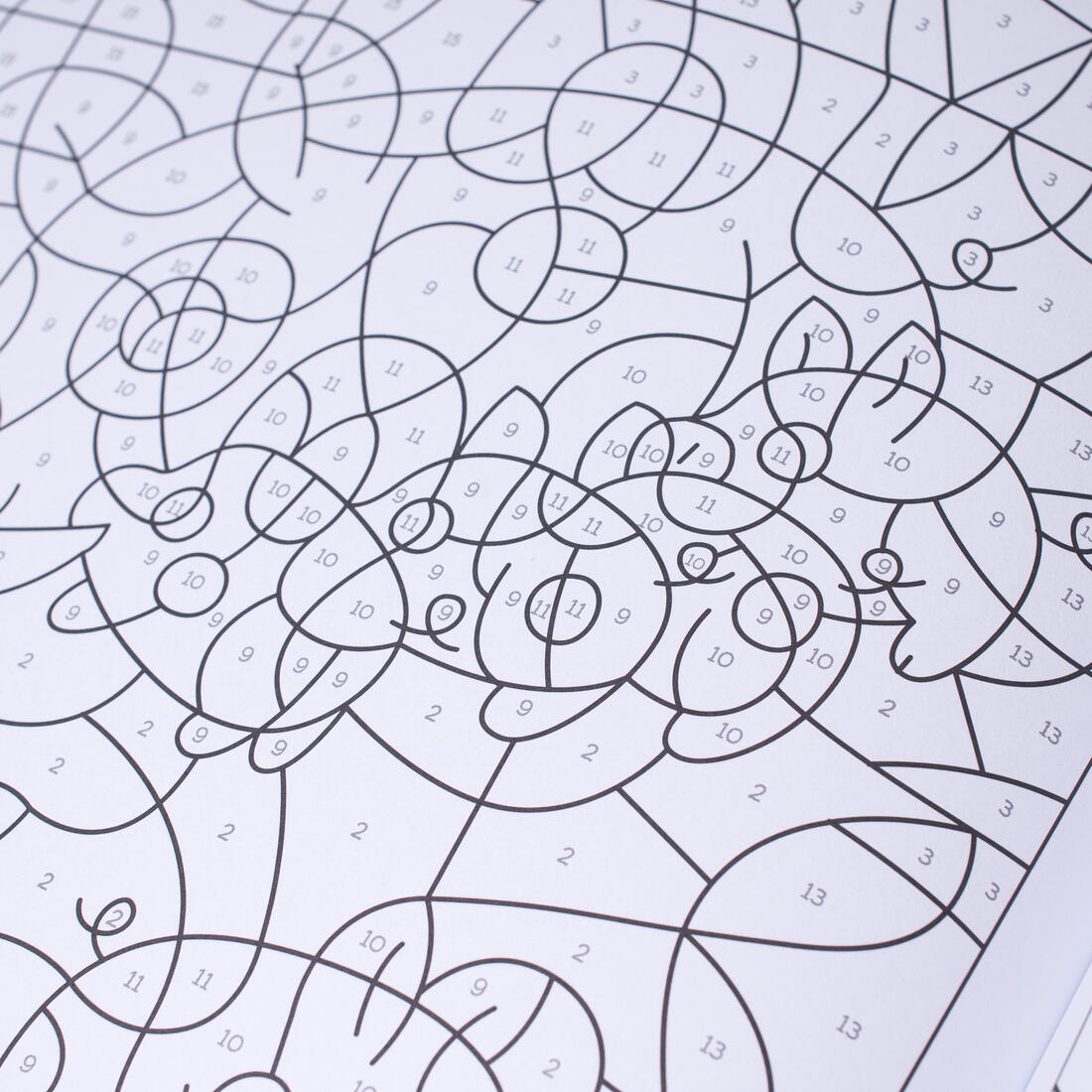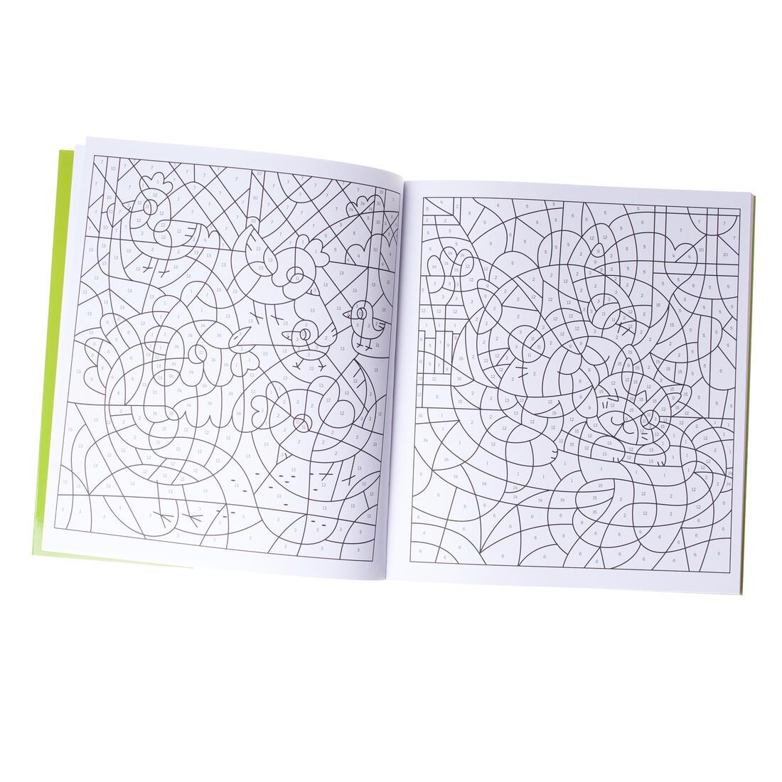 Op de flappen staat aangegeven welke kleuren corresponderen met de nummers in de tekeningen. Op stevig papier dat niet doordrukt.