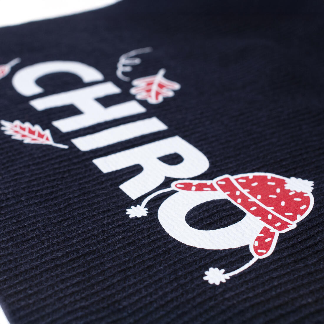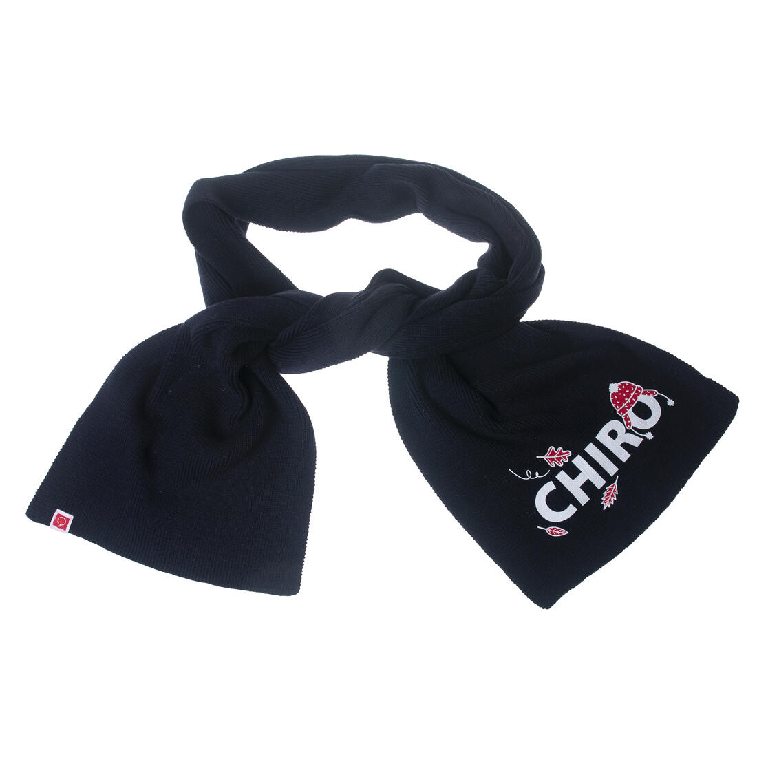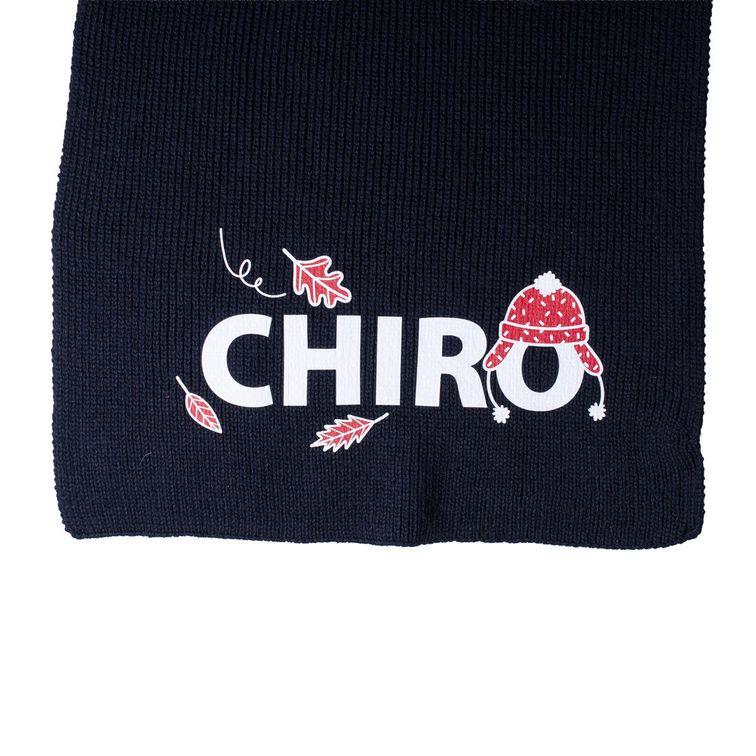 Warme en stijlvolle sjaal met Chirolabel en grote, winterse opdruk van het woordlogo 'Chiro'.