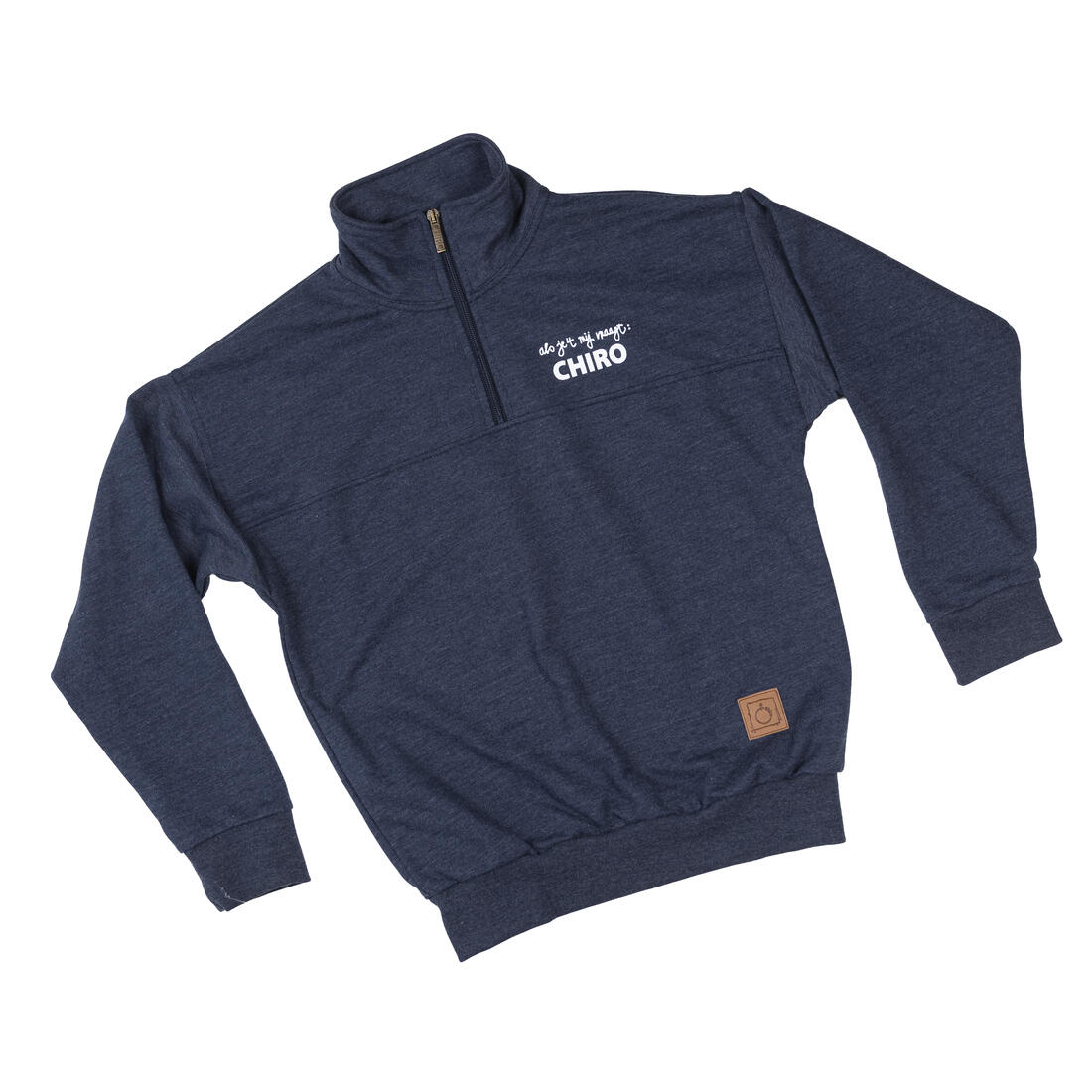 Stijlvolle Chirosweater - model 2025 - voor alle Chirogelegenheden. Draag de trui op school, op het werk of elke andere gelegenheid die een Chirotouch kan gebruiken. Deze aangepaste versie van de trui heeft een korte rits.
