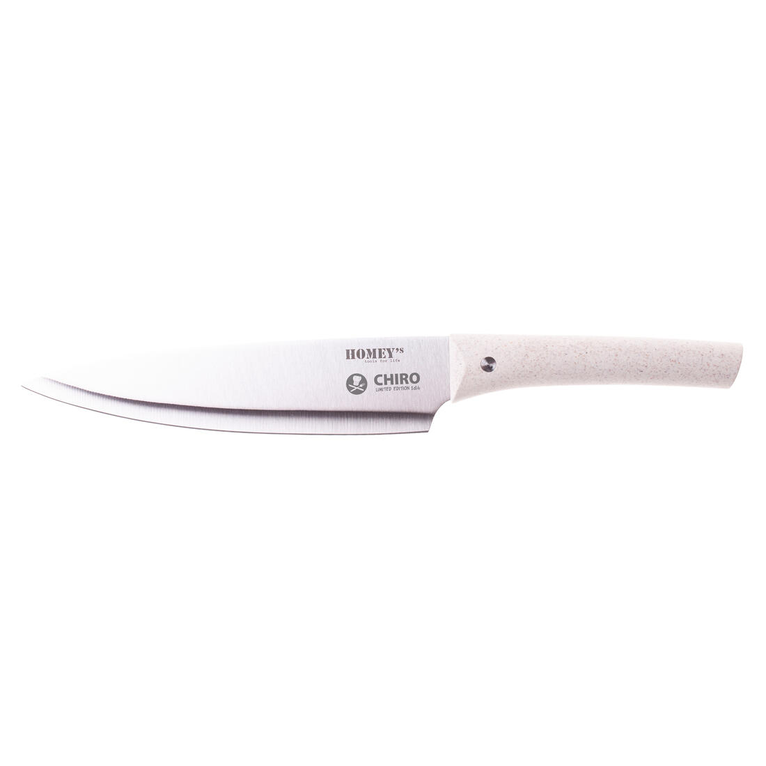 Koksmes, Homey's, VITT, RVS/tarwegras, 20 cm met Chirogravering