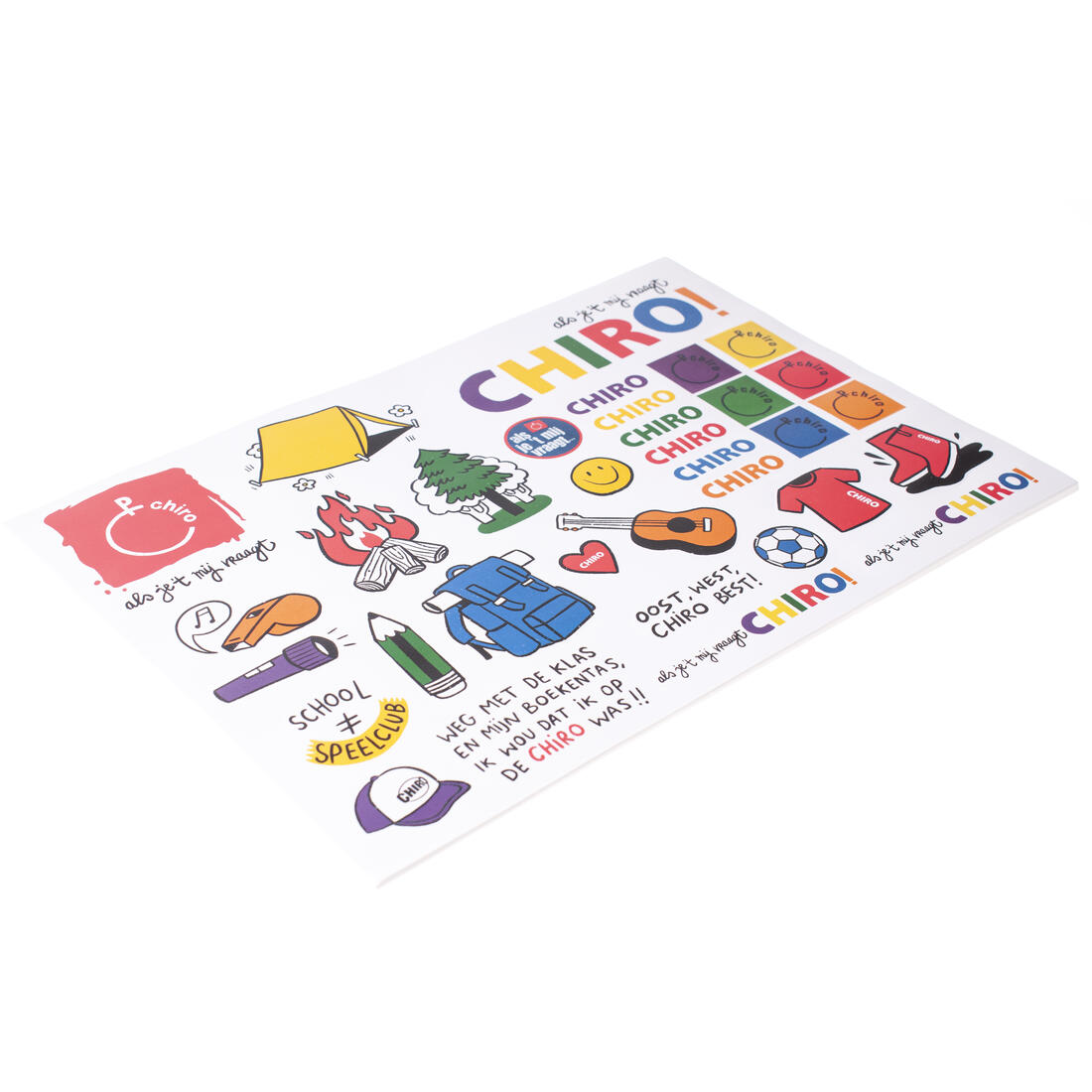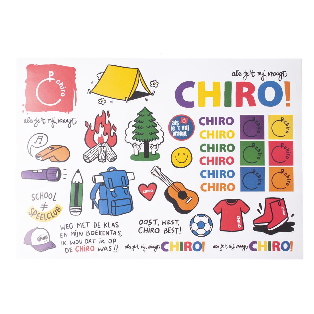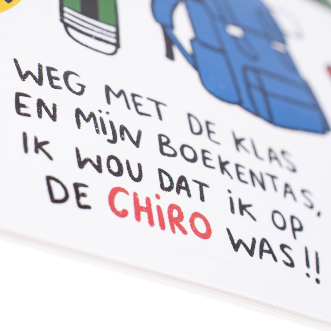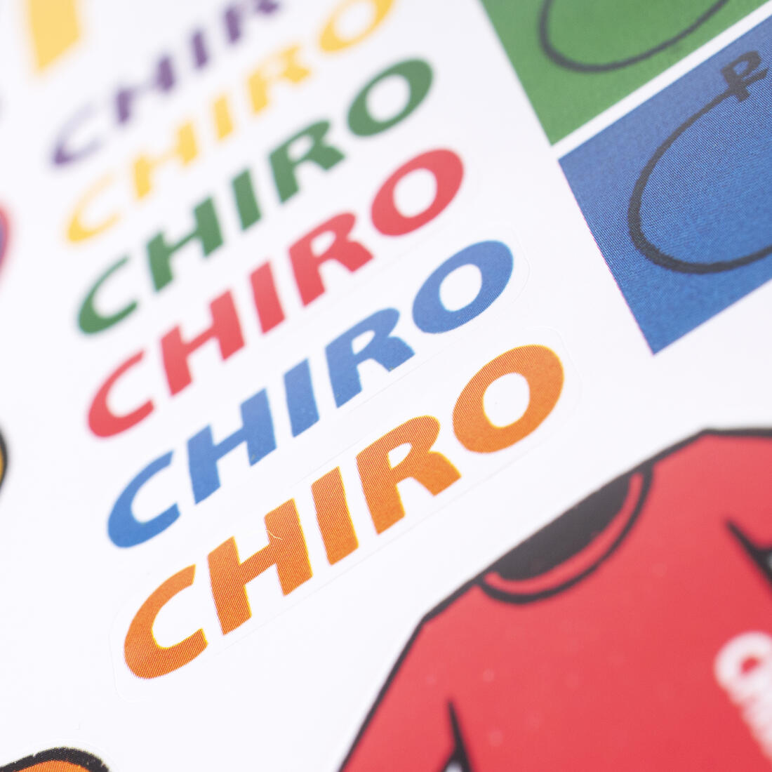 Vel met meerdere Chiroklevers in de verschillende afdelingskleuren. Met deze etiketten kan je kaften, mappen, schriften en ander schoolmateriaal versieren.